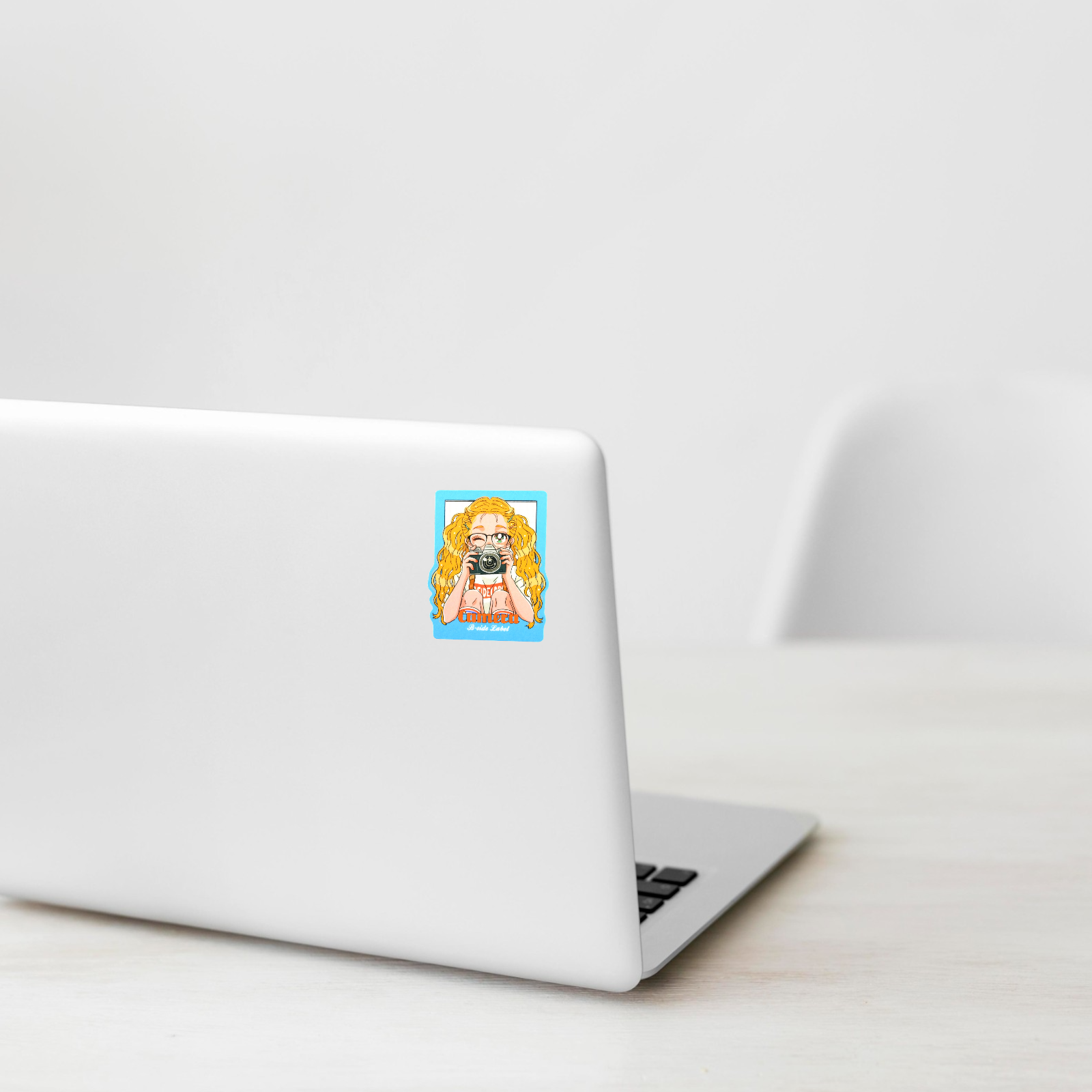 Say cheese! This bright and playful sticker features a cheerful anime girl with long golden hair and glasses, caught mid-shot as she snaps a photo with her camera. With its vibrant blue border and retro vibes, it’s a perfect piece for photography lovers and anime fans alike.