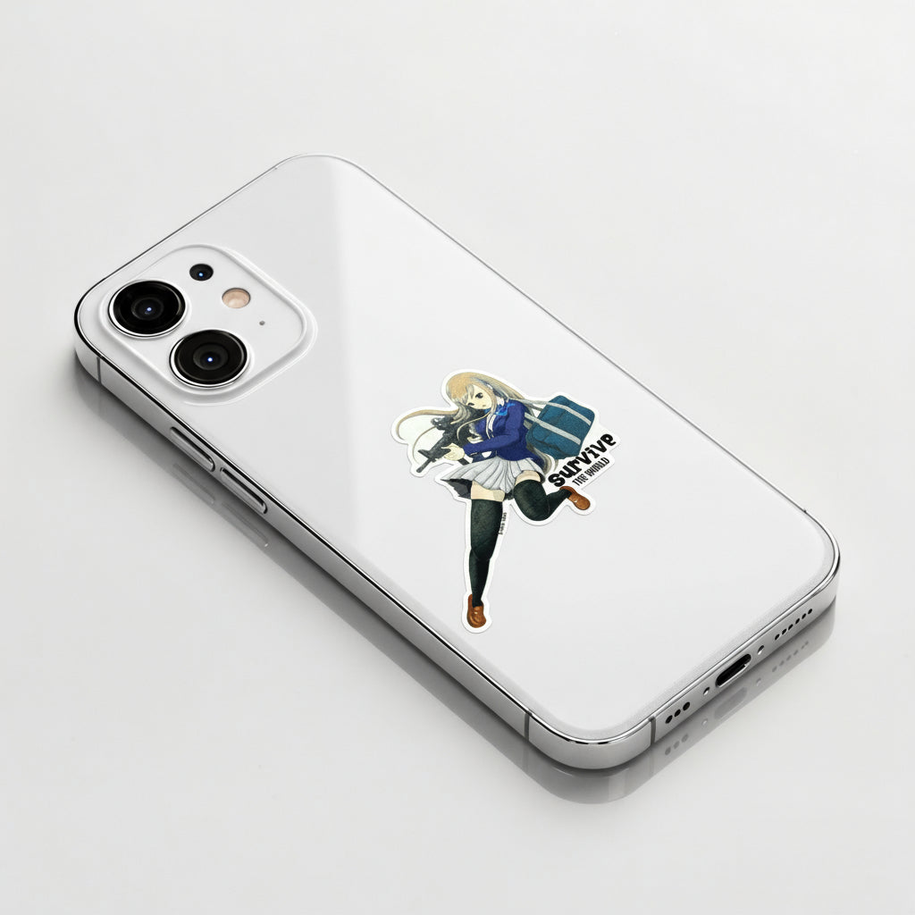This striking B-Side Label sticker features a fierce, determined schoolgirl armed and ready to take on anything life throws her way. With “Survive the World” boldly printed beside her, it’s a sharp reminder of inner strength, grit, and style — all wrapped in signature anime flair.