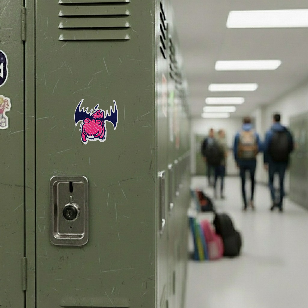 This vivid B-Side Label sticker features a fierce Akuma bear with sharp eyes and bold bat wings — equal parts cute and devilish. Its comic-style shading and clean linework make it pop with attitude, perfect for those who like their kawaii with a rebellious streak.
