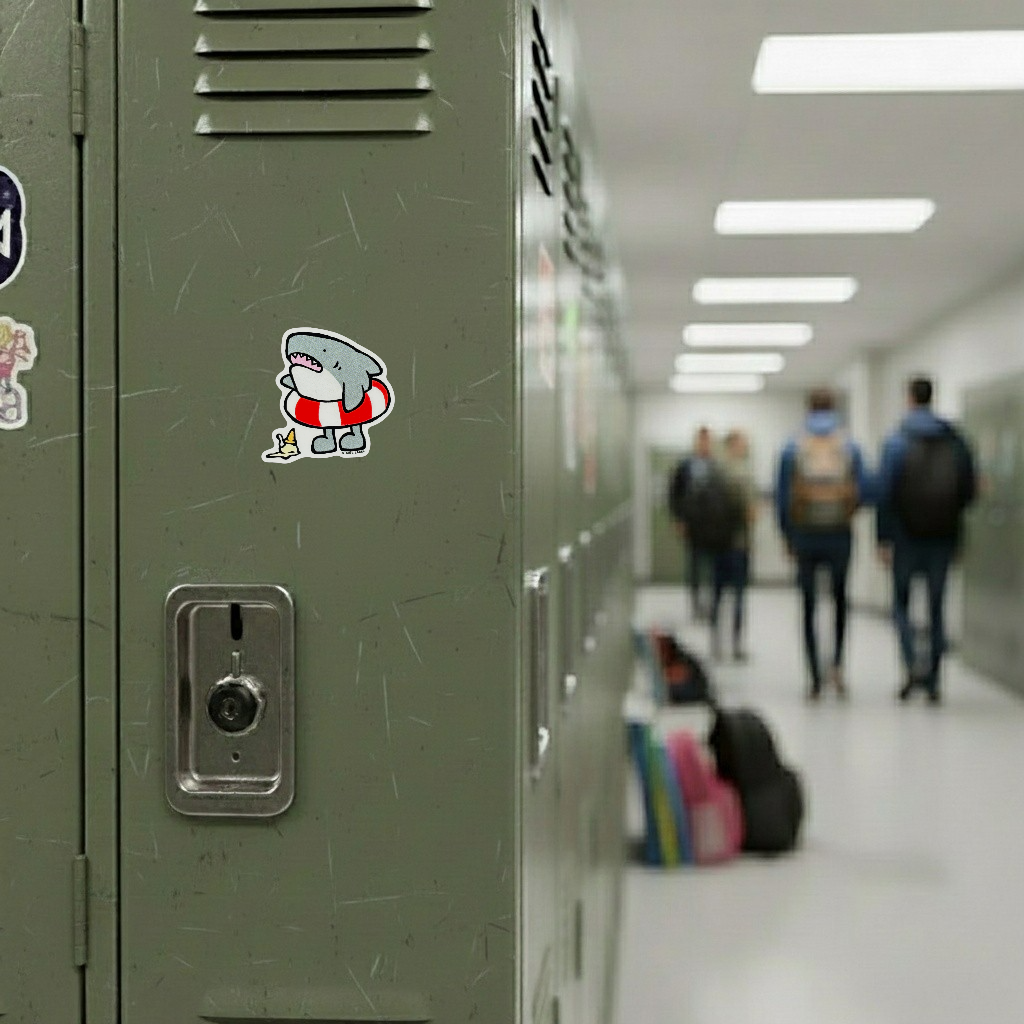 Even sharks have bad days! This adorable B-Side Label sticker captures a lovable little shark wearing a red-striped floatie — staring in dismay at his fallen ice cream. It’s funny, cute, and just a little bit heartbreaking.