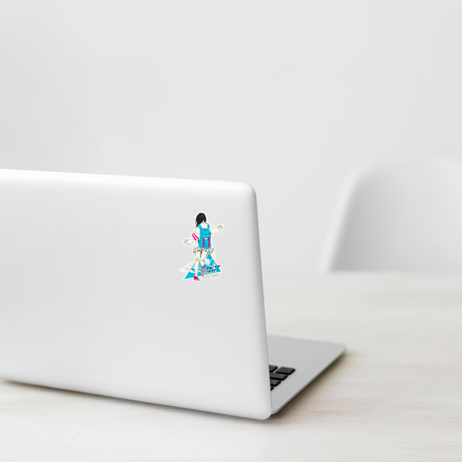 A snapshot of youth in motion — this B-Side Label sticker shows a girl mid-step, backpack swinging, sneakers bright against a splash of electric blue. It’s carefree, cinematic, and full of energy, like the opening scene of your favorite coming-of-age anime.