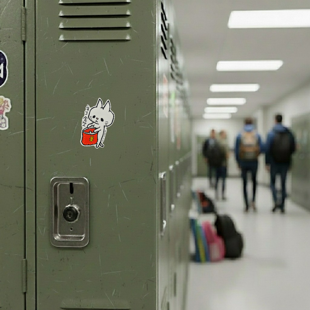 This poor kitty’s wallet situation says it all. Holding an empty red coin purse marked with the yen symbol, this B-Side Label sticker humorously reads “ネコ金欠” (Neko Kinketsu) — “Cat is broke!” It’s the perfect blend of cute and painfully relatable.