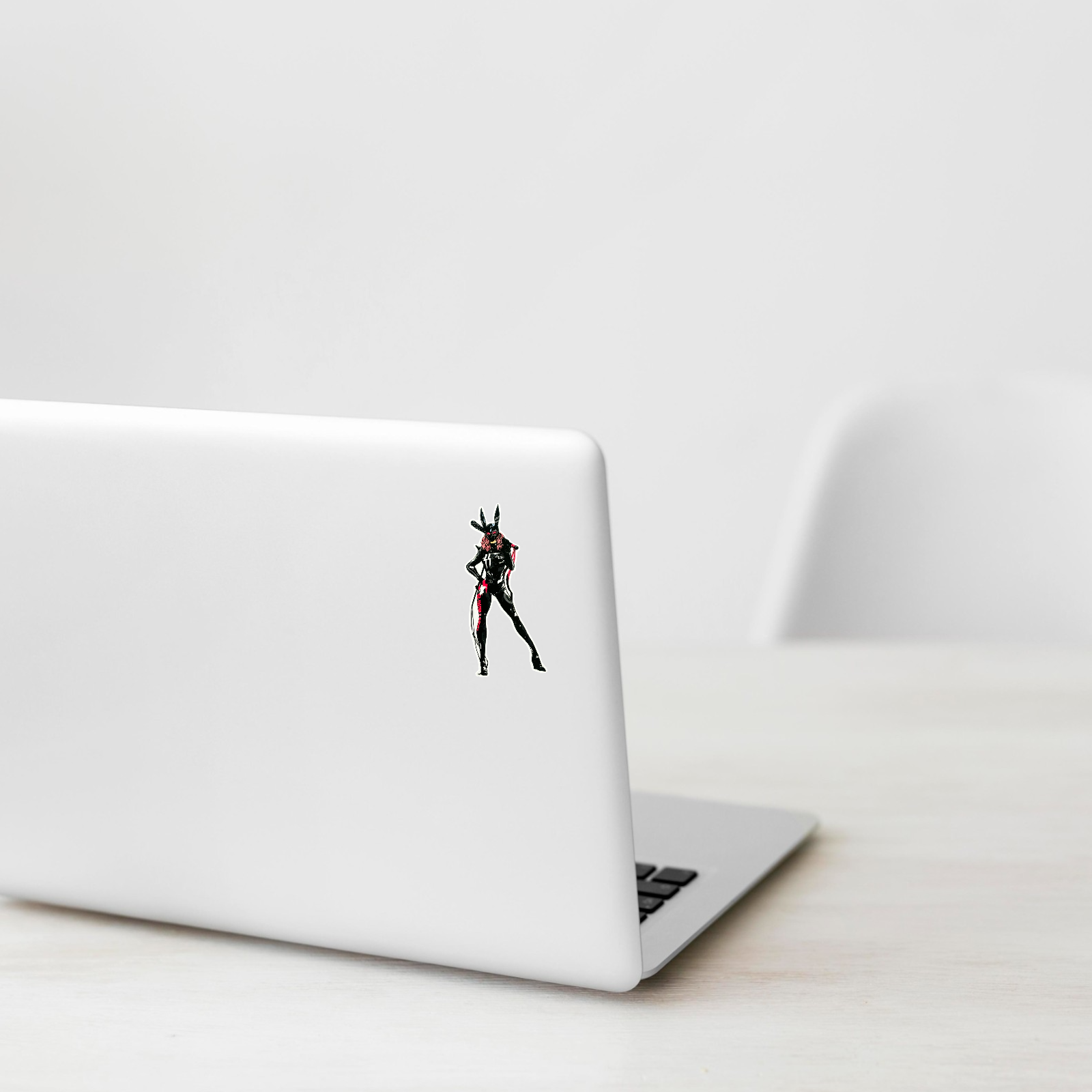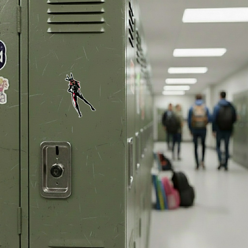 A mix of power, mystery, and pure edge — this B-Side Label sticker captures a latex-clad figure with a bunny mask and confident stance. Designed in sharp black and crimson tones, it’s a striking image that oozes rebellious style and fearless confidence.