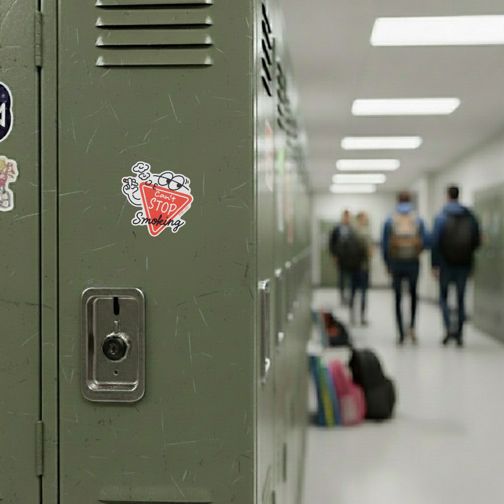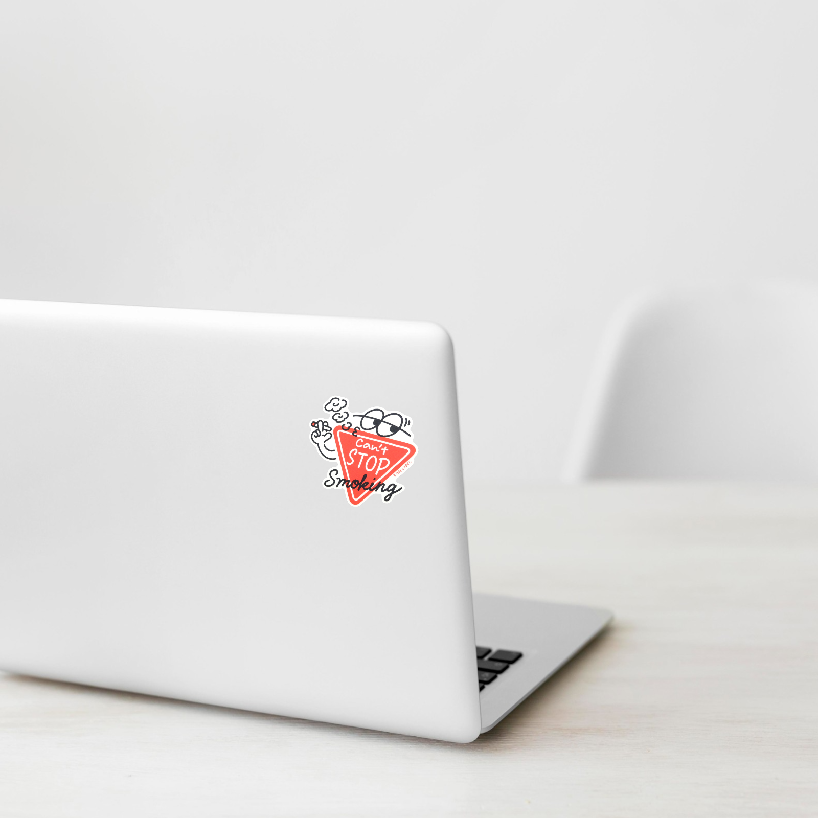 Playfully ironic and full of retro charm, this B-Side Label sticker features a cheeky hand-drawn triangle sign character puffing away with a sly grin. The “Can’t Stop Smoking” slogan captures the brand’s tongue-in-cheek humor perfectly — a rebellious nod to vices and self-awareness alike.