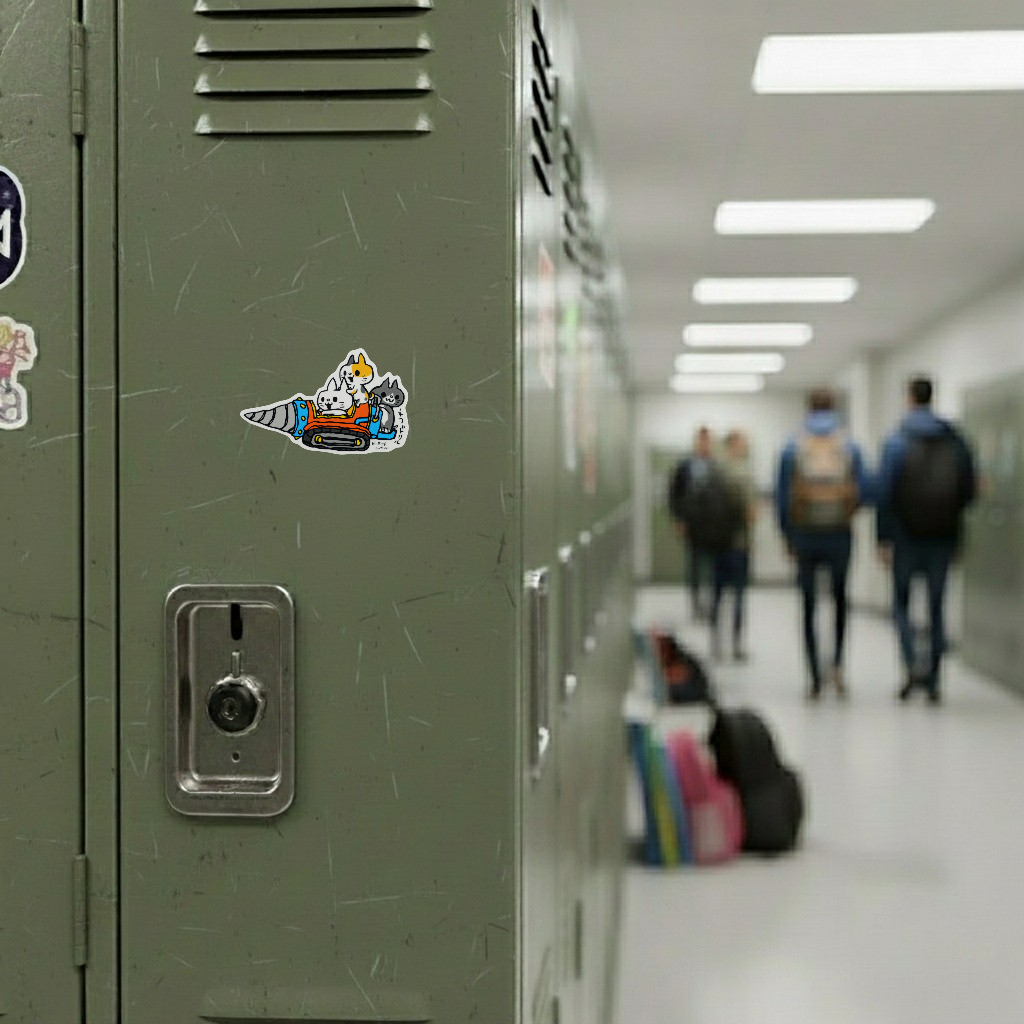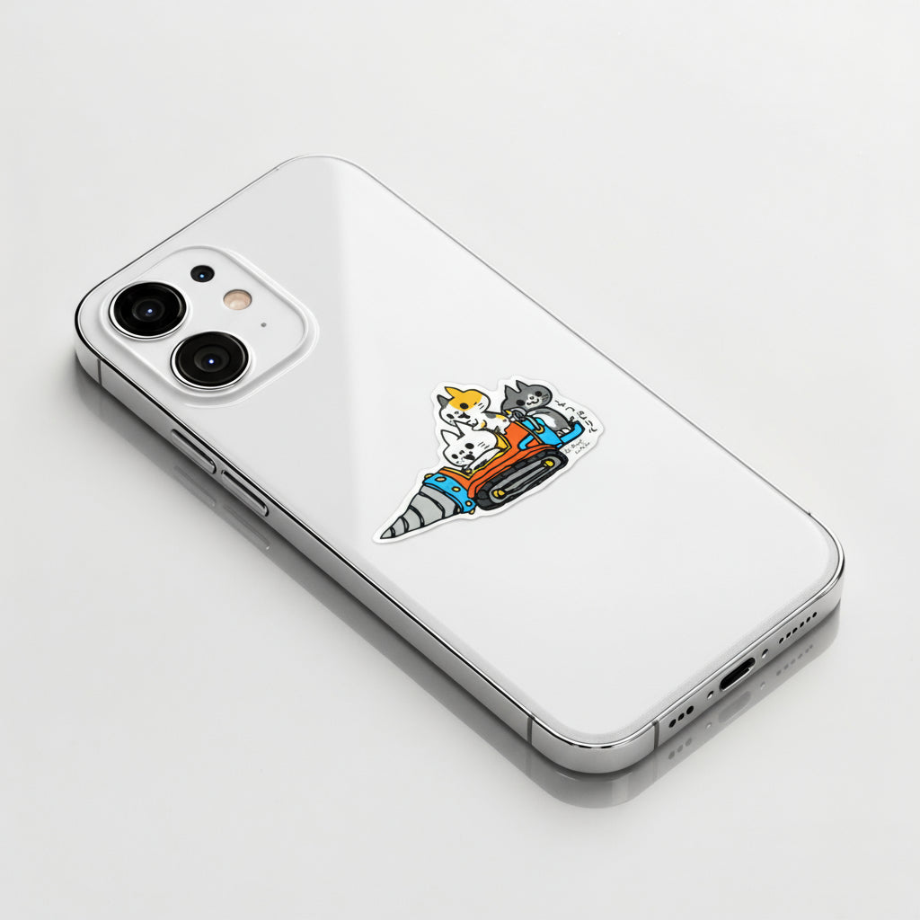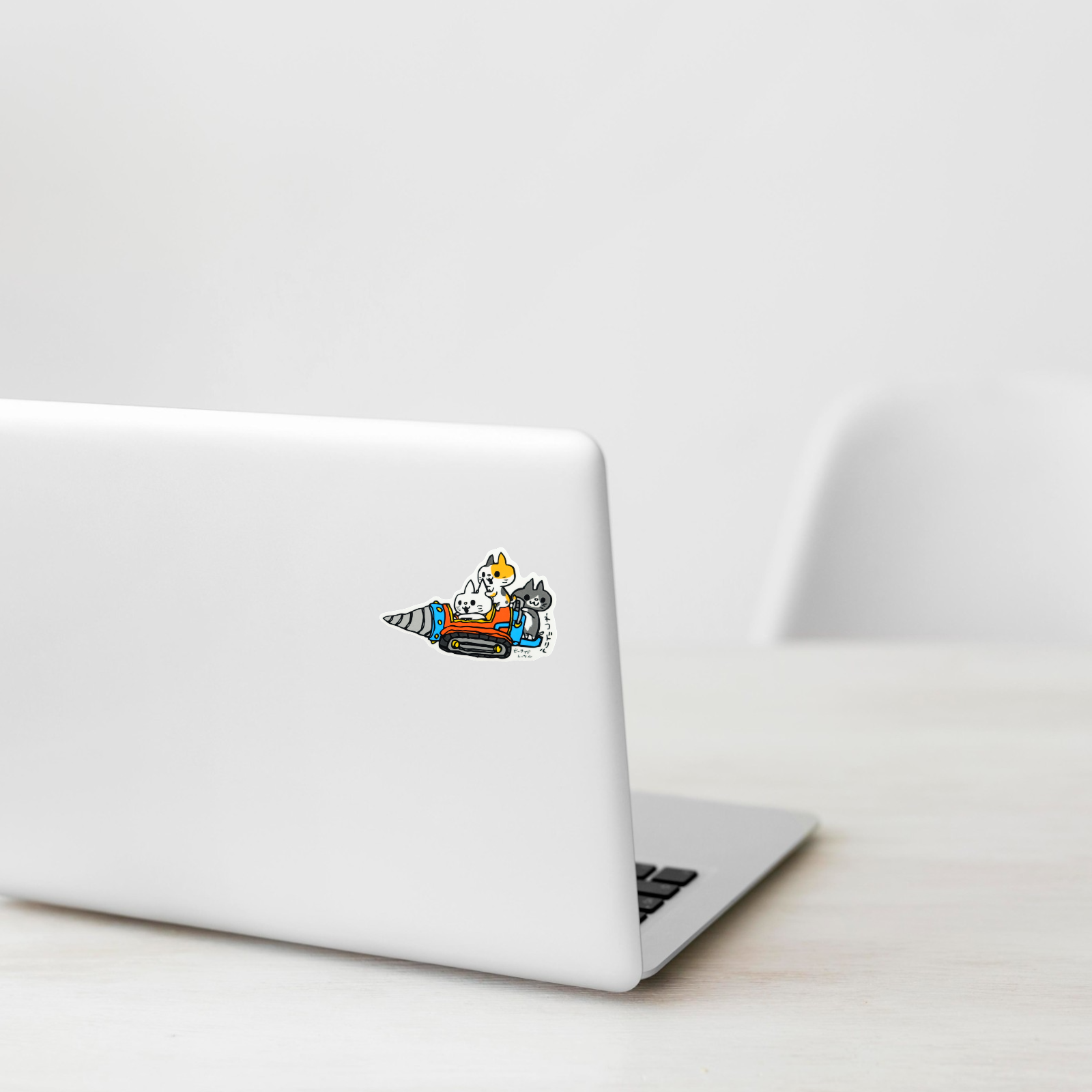 This hilarious and colorful B-Side Label sticker features a crew of determined cats driving a heavy-duty drill machine! Their serious expressions and bright vehicle design bring a dose of playful chaos to your day — perfectly capturing B-Side Label’s offbeat humor.