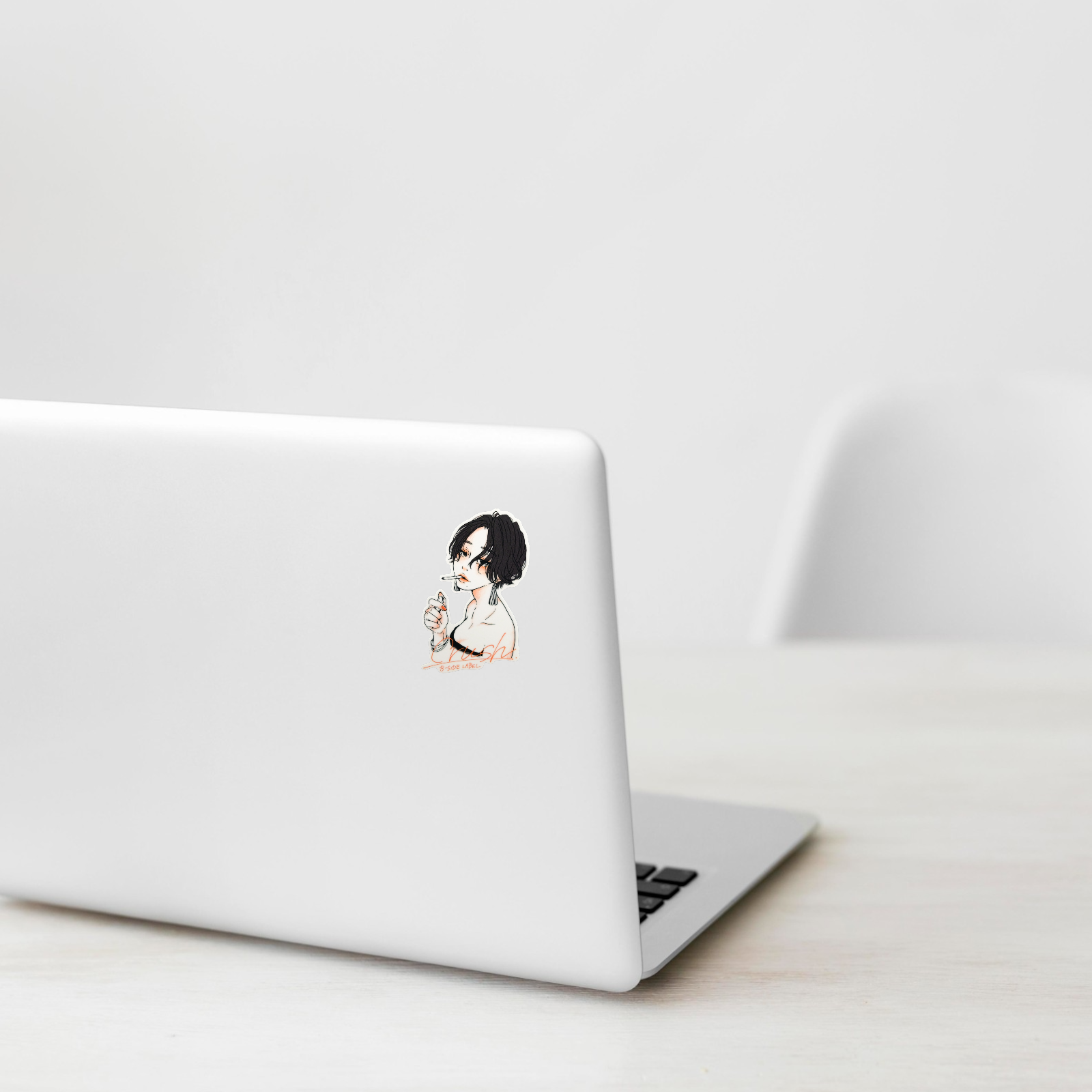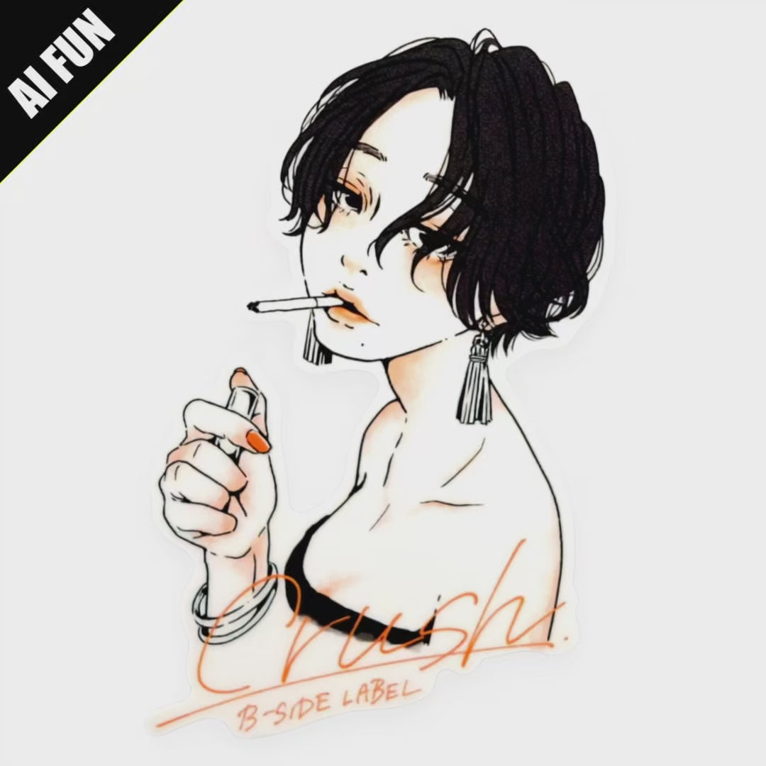 This stylish sticker captures an effortlessly cool vibe — a striking figure with tousled hair, a cigarette, and that unmistakable air of confidence. Designed by B-Side Label, it embodies a bold and modern aesthetic that stands out anywhere you place it.
