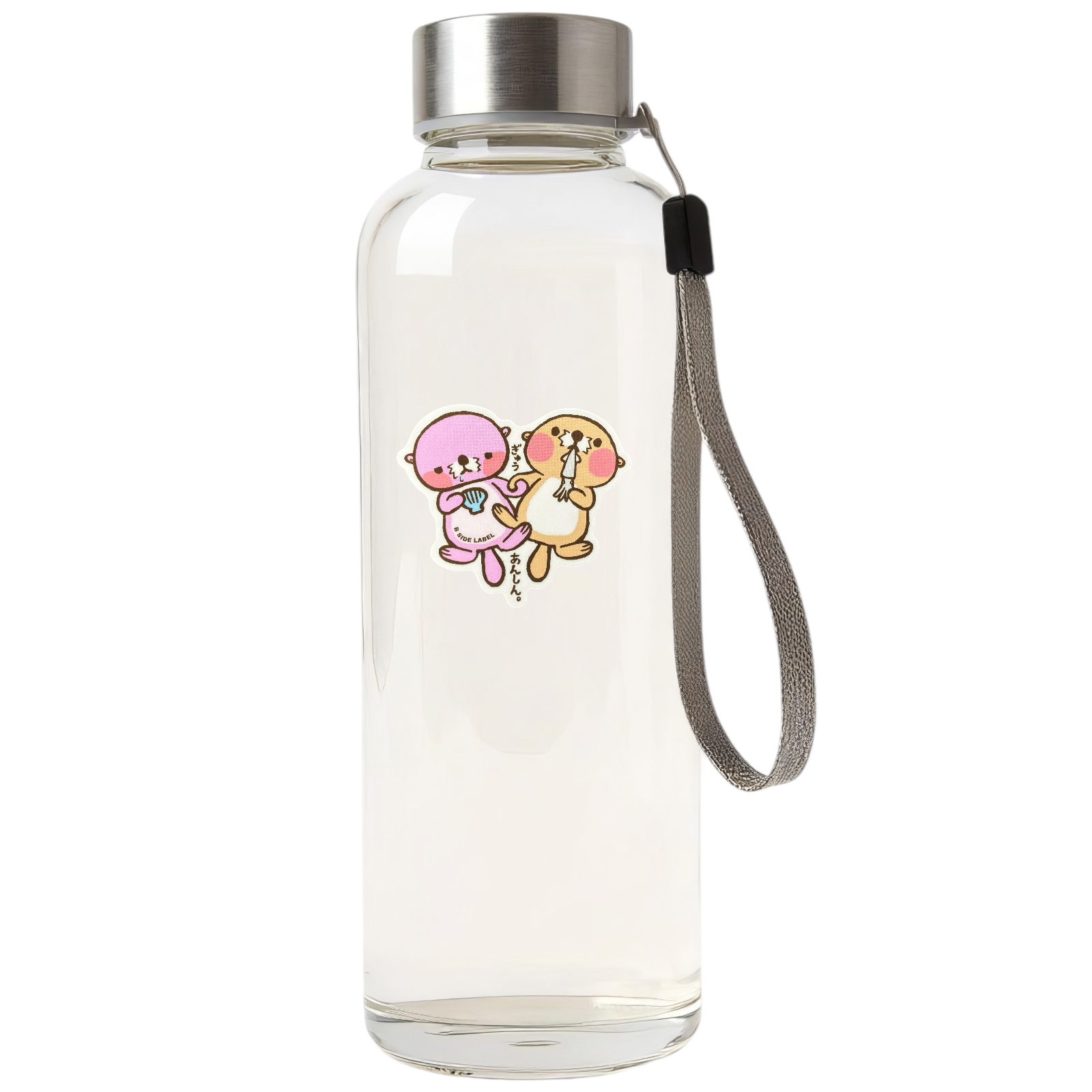 Two adorable otters hold hands while clutching their favorite snacks — a seashell and a squid! The Japanese text reads “ぎゅう” (gyuu: meaning “squeeze”) and “あんしん” (anshin: meaning “comfort” or “peace of mind”), capturing that cozy, heartwarming feeling of being close to someone special.
