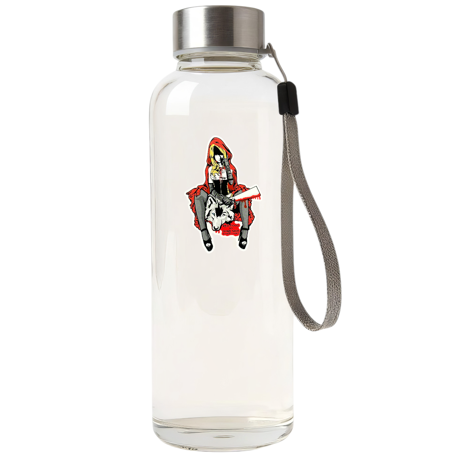 Forget the fairy tale — this Red Riding Hood isn’t running. She’s the one to fear. With gothic flair, a dripping bat, and a wolf at her feet, this B-Side Label design flips innocence into fierce independence.