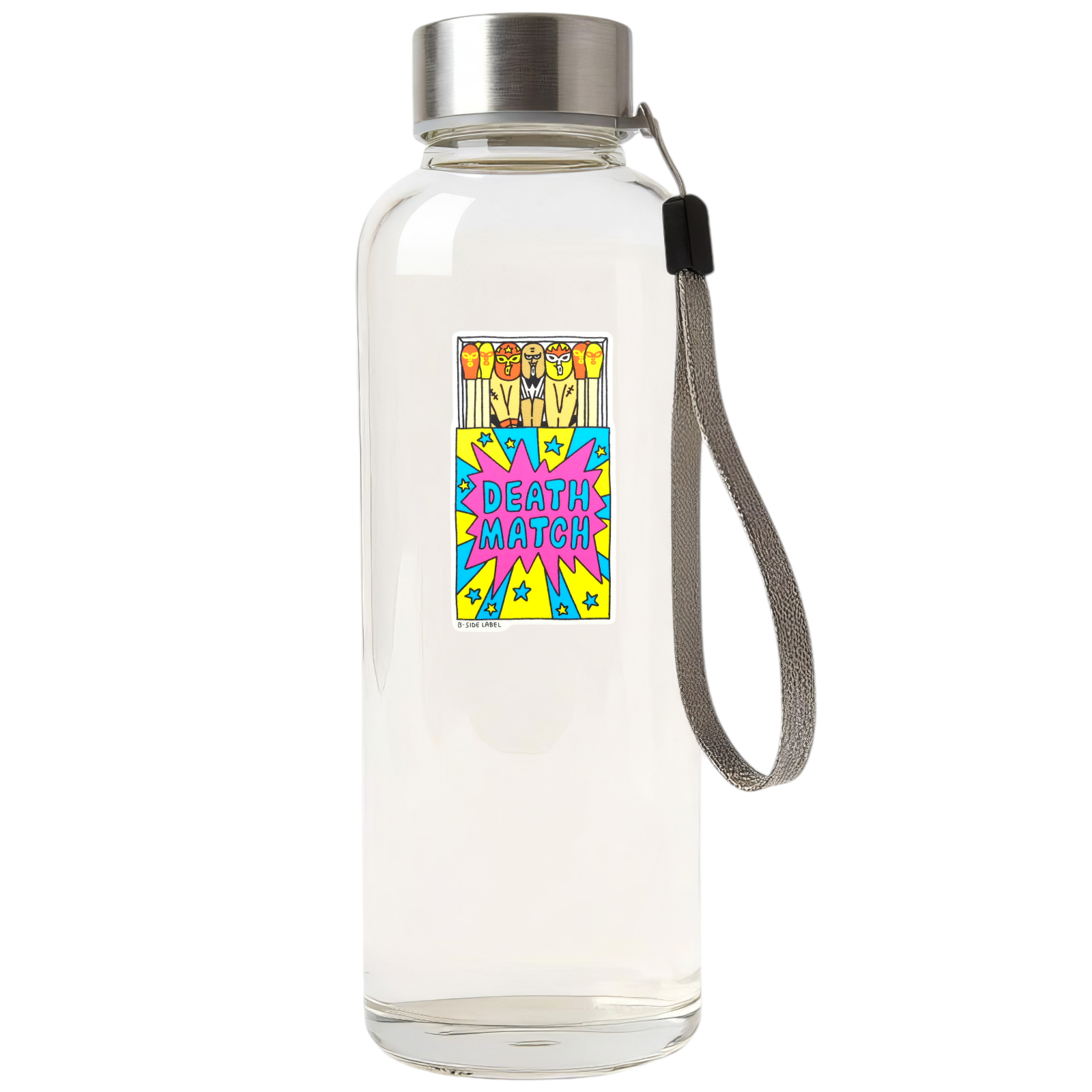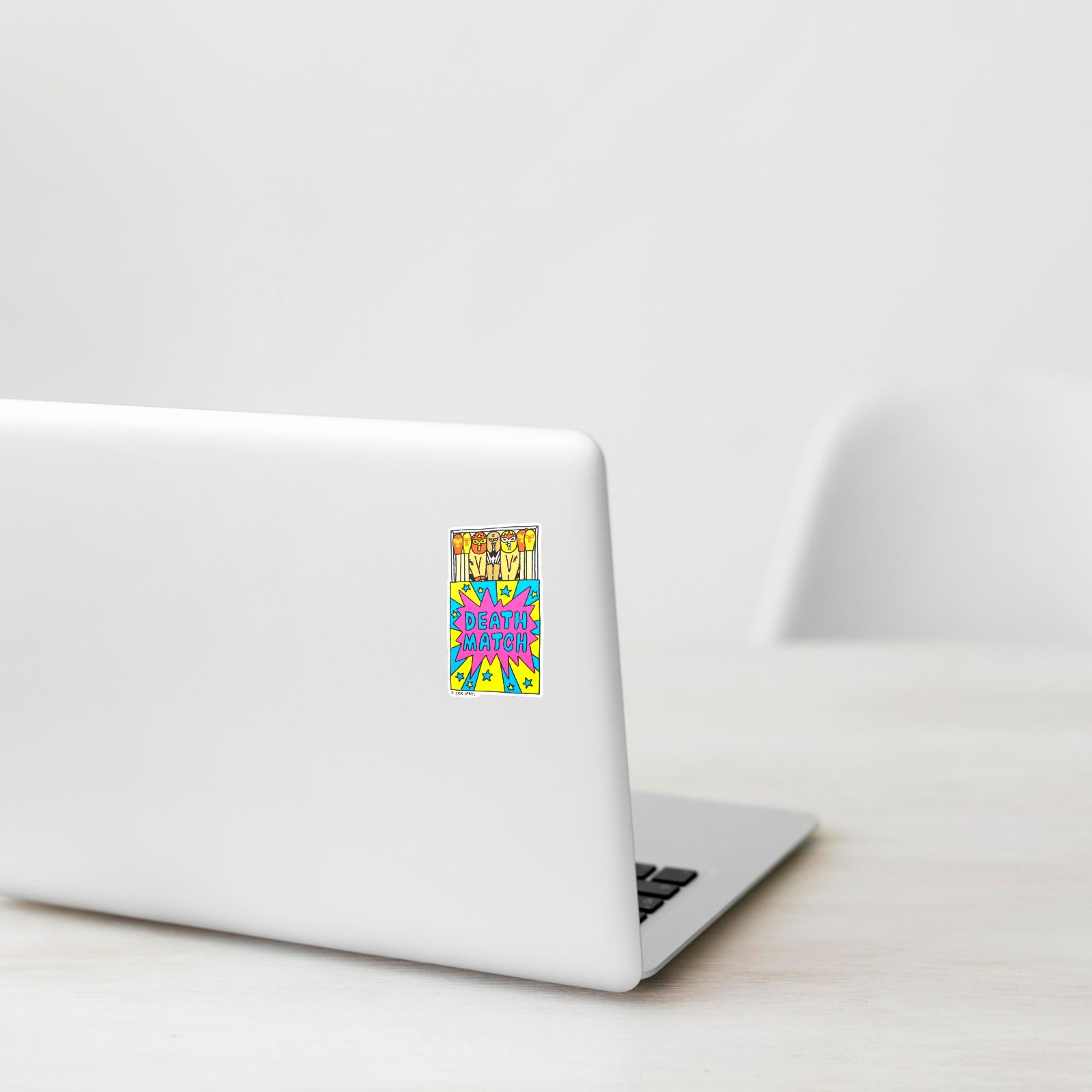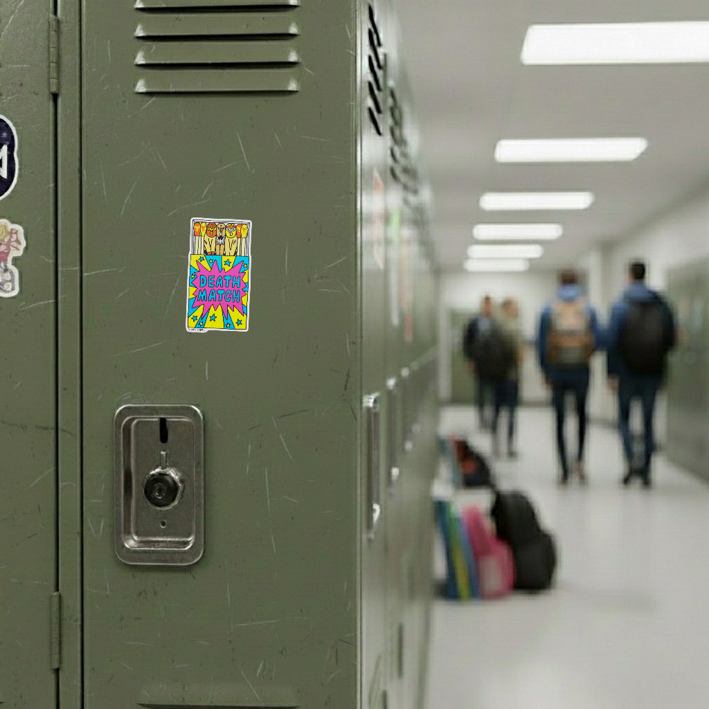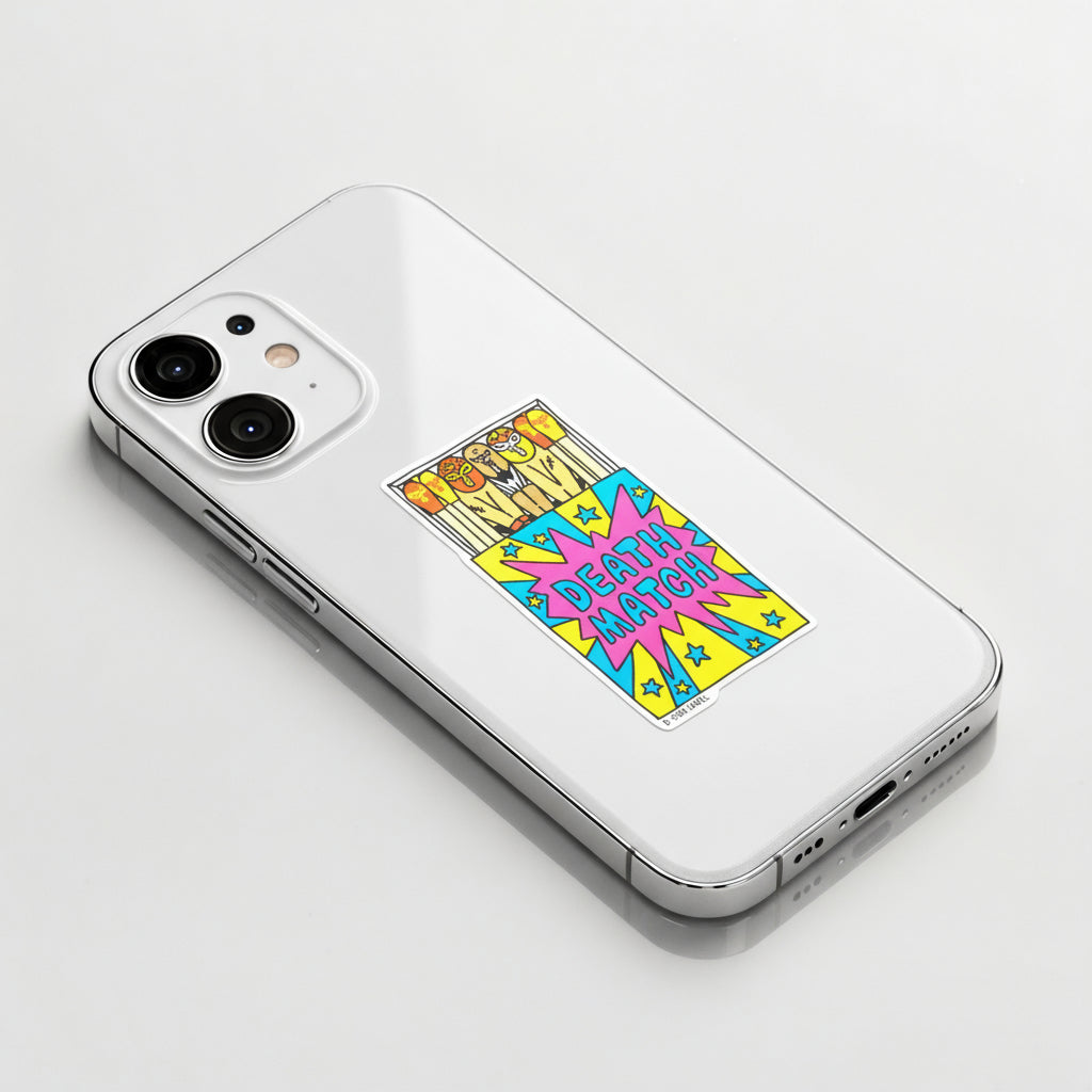 Get ready to rumble! This explosive B-Side Label sticker features a matchbox full of masked wrestlers, turning everyday matches into a “Death Match” showdown. Bright, pop-art colors and comic-style energy make it a total knockout design.