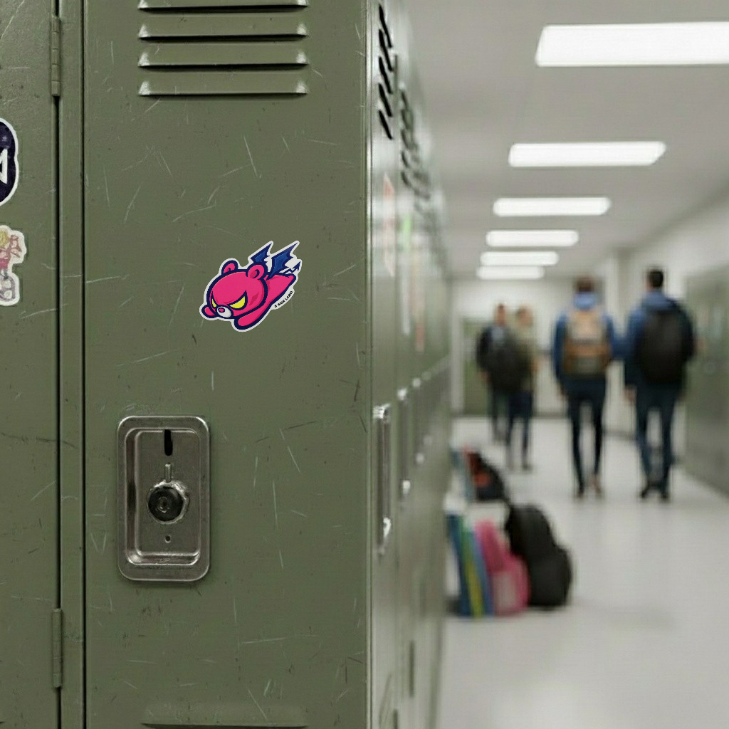 This B-Side Label sticker features Akuma bear soaring forward with sharp yellow eyes and tiny devil wings. The mix of fierce energy and playful design makes it an instant eye-catcher — a perfect symbol of speed, mischief, and power.