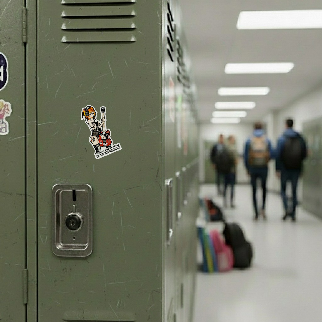 This edgy sticker from B-Side Label strikes the perfect chord between rebellion and rock chic. Featuring a confident guitarist with tattoos, headphones, and a crimson electric guitar, it’s a celebration of music’s intoxicating power and self-expression.