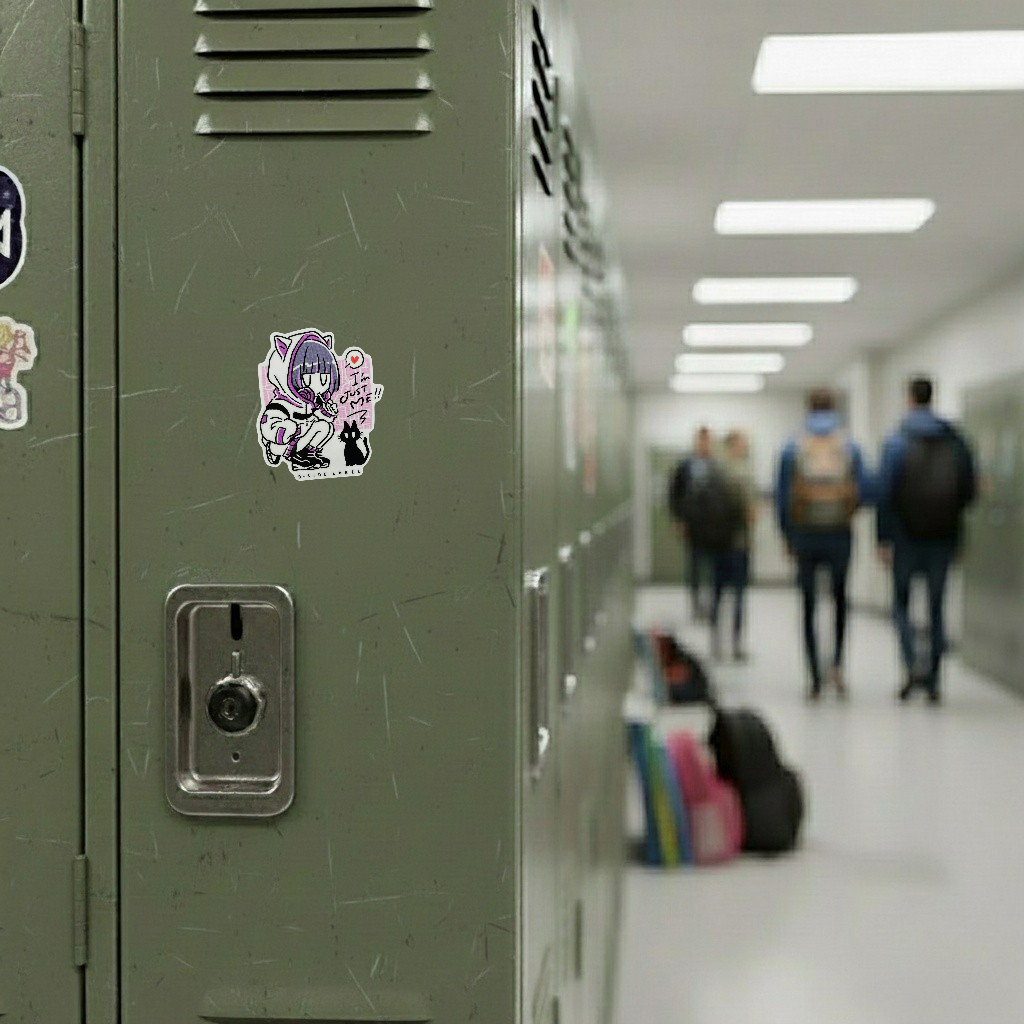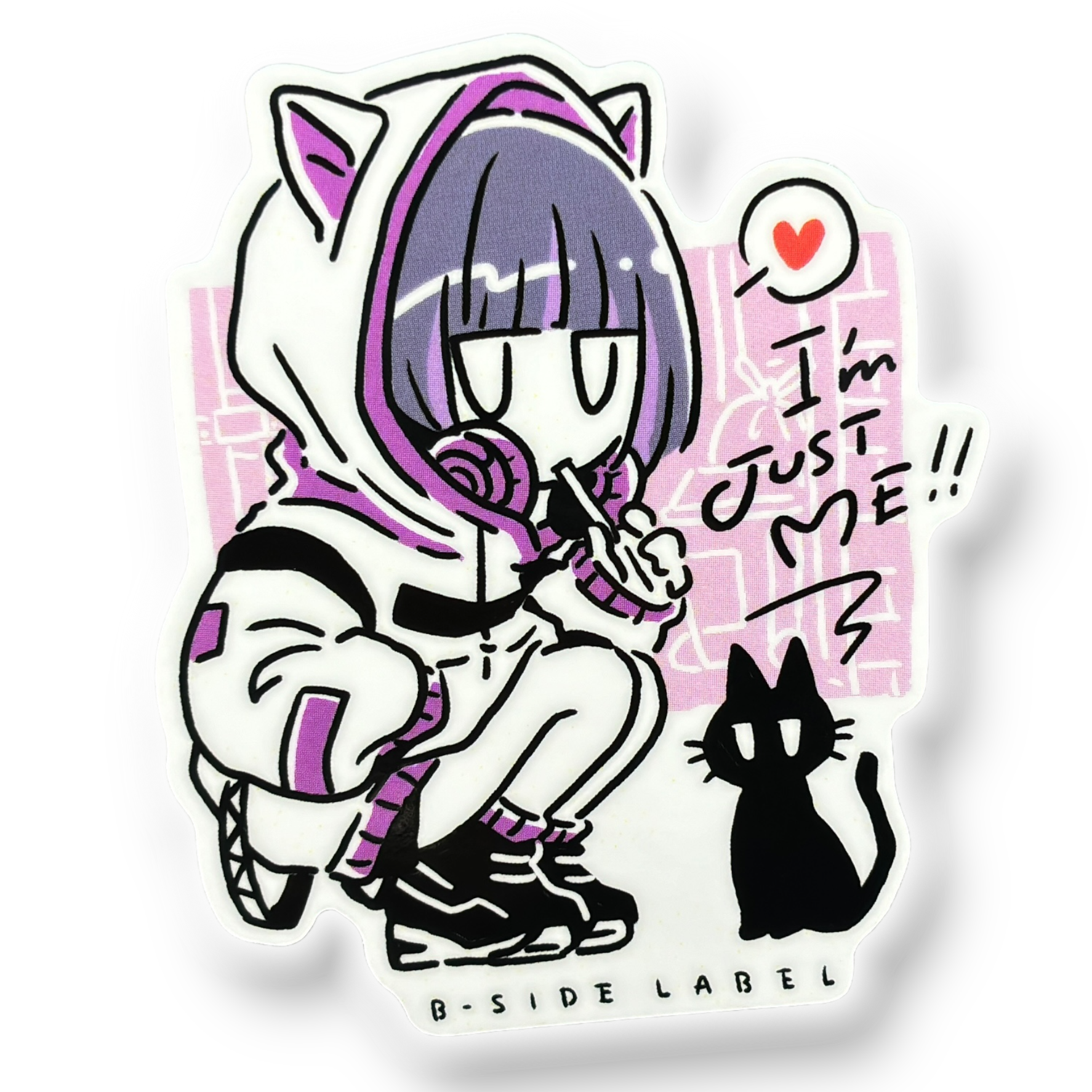 Show off your unapologetic style with this “I’m Just Me” sticker from B-Side Label. Featuring a mysterious streetwear girl in a cat-eared hoodie and her equally cool black cat companion, this design captures individuality, quiet rebellion, and total self-confidence — in signature B-Side fashion.