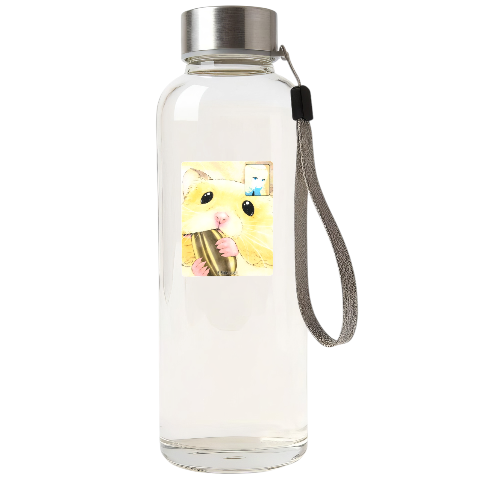 This adorable B-Side Label sticker captures a moment of pure sweetness — a fluffy golden hamster clutching a sunflower seed with sparkling eyes, paired with a soft portrait of a girl in the corner. It’s whimsical, tender, and quietly surreal — a charming blend of innocence and mystery.