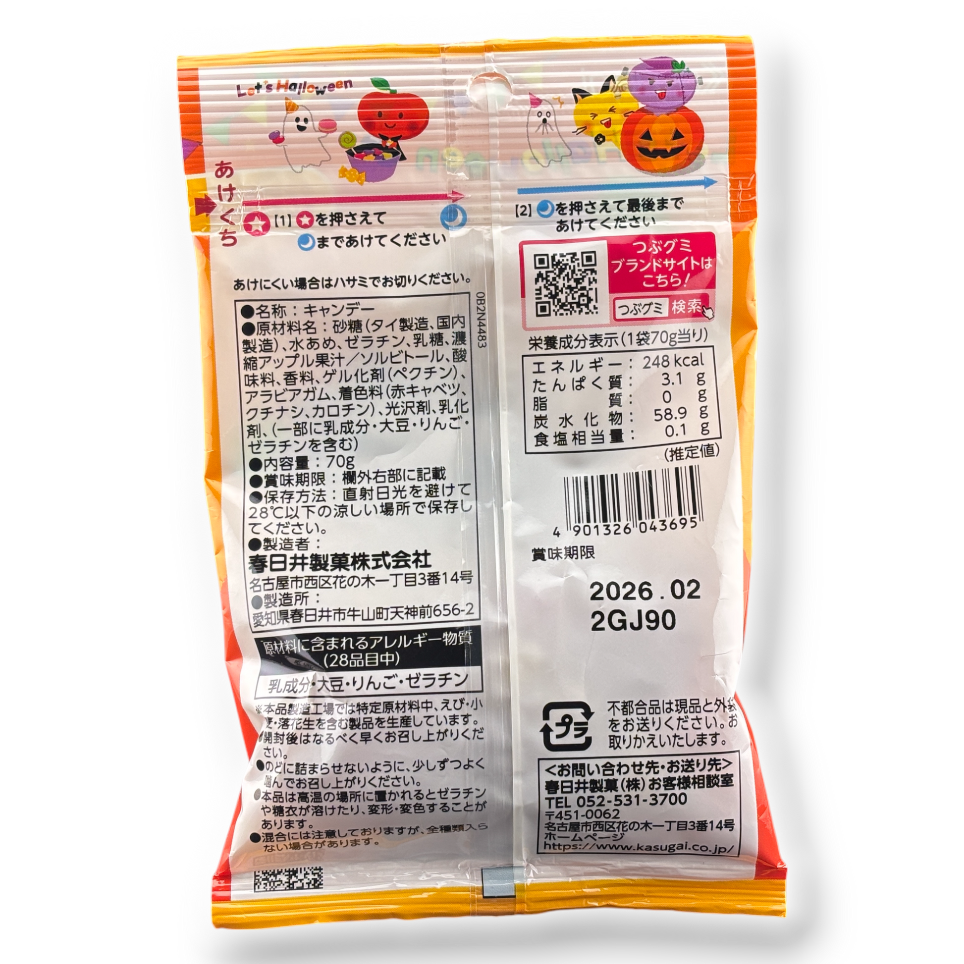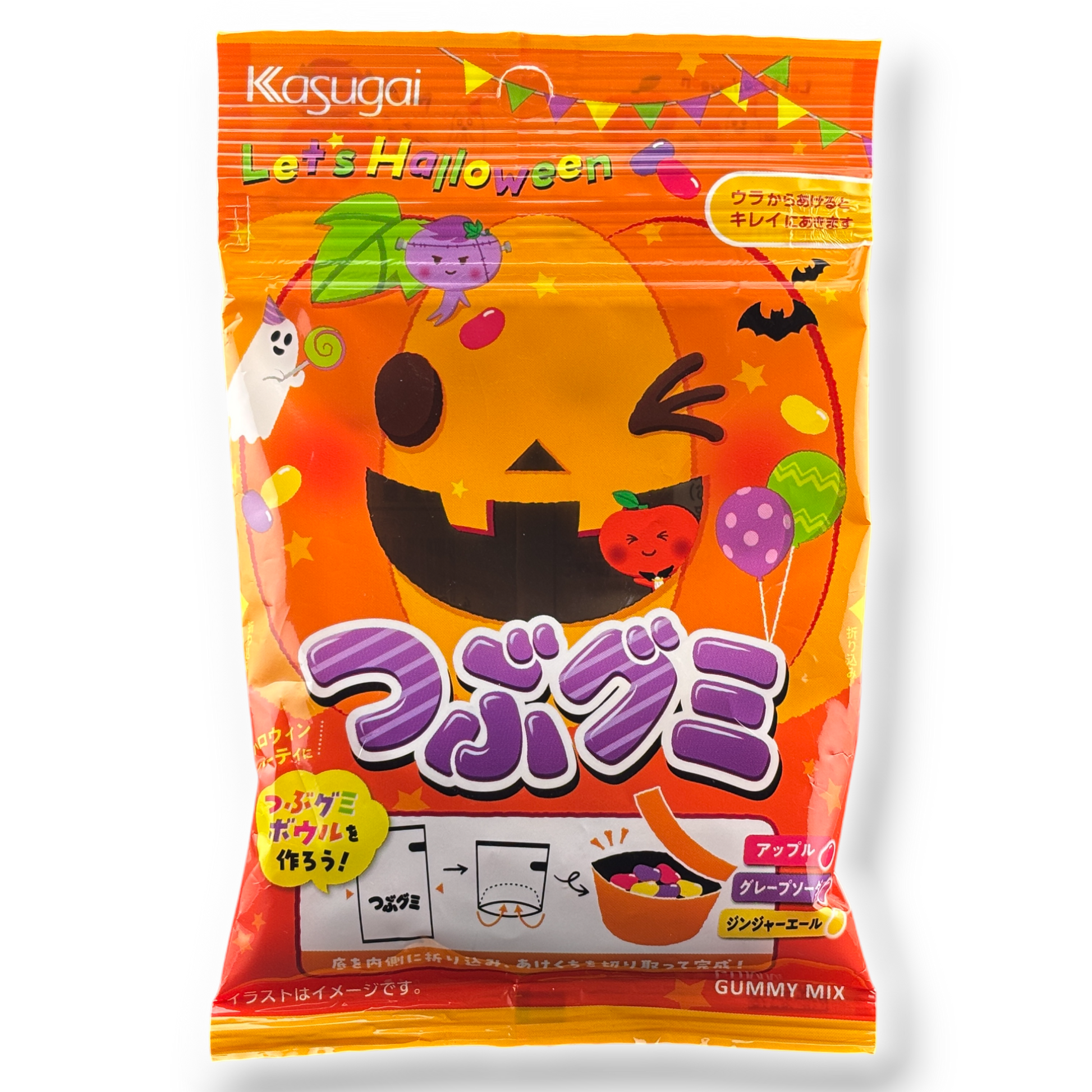 Featuring a playful pumpkin design, this Halloween-limited version of Kasugai’s Tsubu Gumi is packed with colorful, bite-sized gummies in a fruity mix including apple, grape, and ginger-ale style flavors.