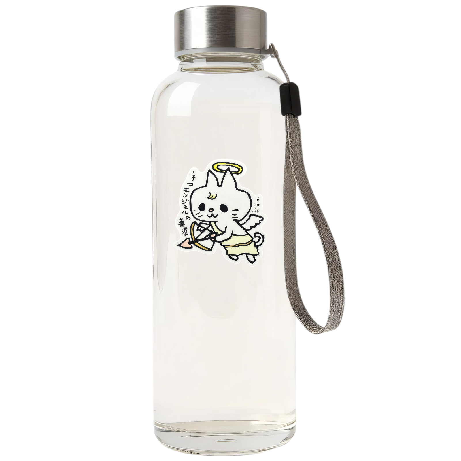 Pure of heart, soft of paw — this heavenly cat is on a mission to spread good vibes! Featuring a cute angel cat complete with halo, wings, and a heart-tipped bow, this design reads “ネコエンジェルの善導” (Neko Enjeru no Zendō), meaning “Guidance from the Cat Angel.”