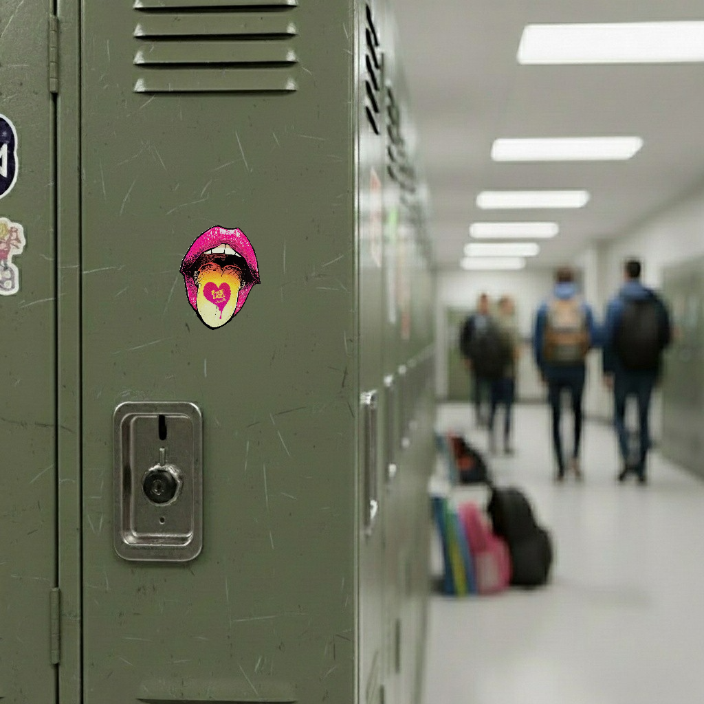 Electric, daring, and unforgettable — this B-Side Label sticker brings pop-art attitude to life. The vibrant lips and glowing heart create a bold, high-contrast design that screams confidence and edge with every curve and color.
