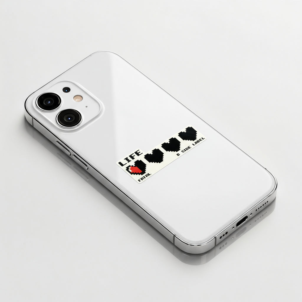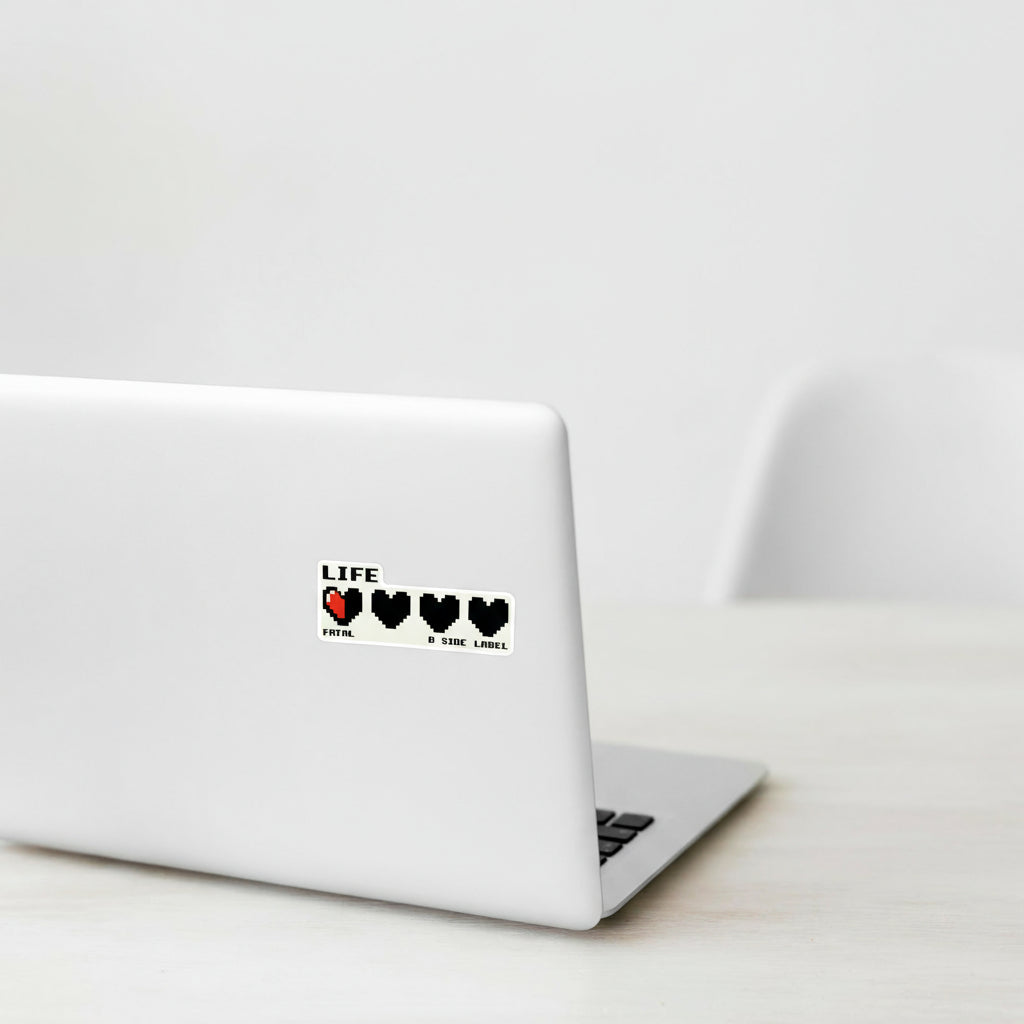 This retro “Life Meter (Fatal)” sticker from B-Side Label channels classic 8-bit gaming energy with a nearly empty pixelated heart bar and the ominous label “FATAL.” It’s a perfect nod to those edge-of-defeat moments every gamer knows — stylishly simple yet loaded with nostalgia.