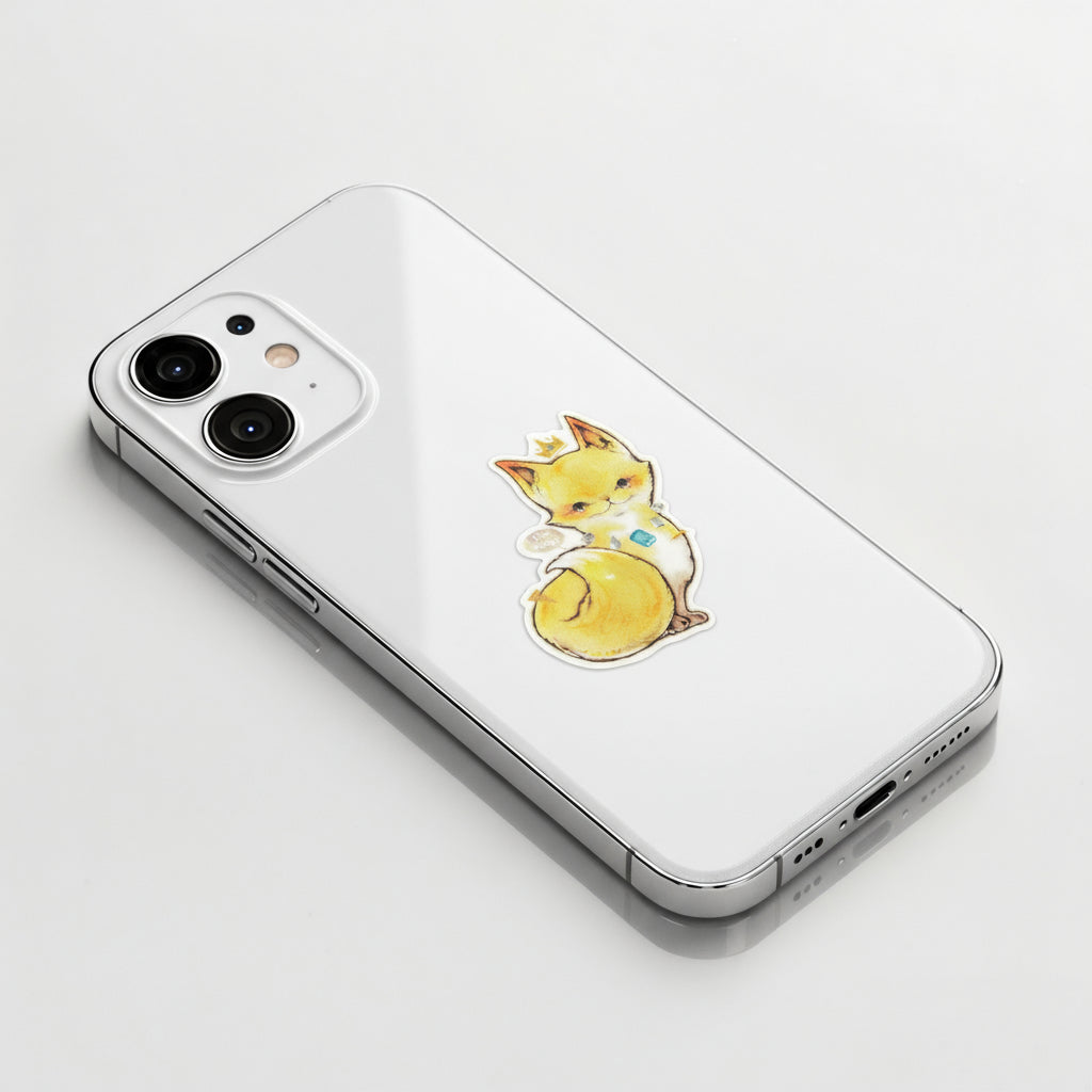 Regal and radiant, this charming golden fox knows exactly who’s in charge. With a jeweled collar, tiny crown, and soft watercolor texture, this sticker blends fantasy elegance with pure cuteness—the hallmark of B-Side Label magic.