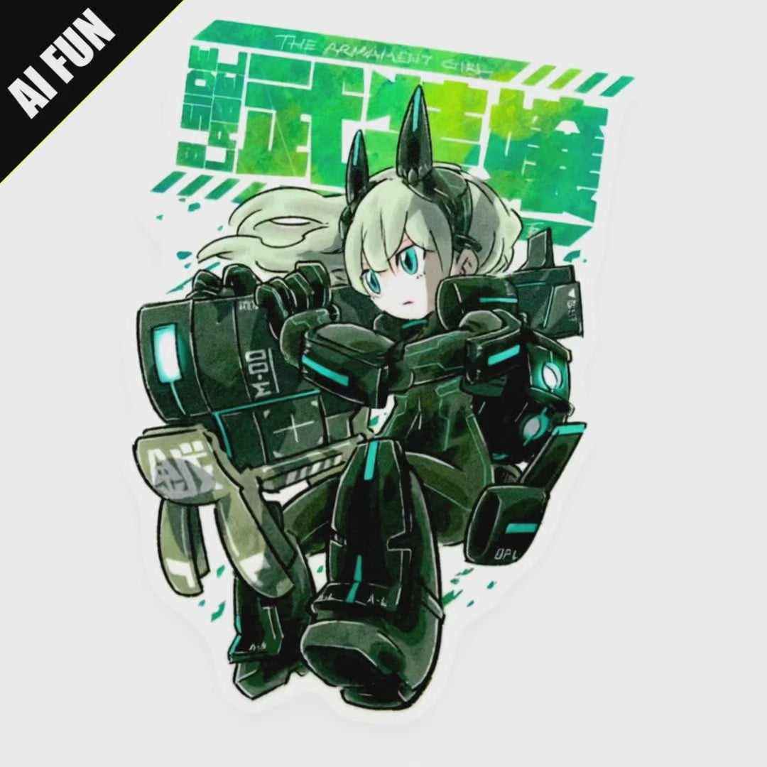 Gear up with this cyber-chic fusion of anime and mecha energy! Featuring a fierce armored girl in futuristic combat gear with glowing teal accents, this sticker captures the essence of high-tech cool straight from Japan’s vibrant design scene.