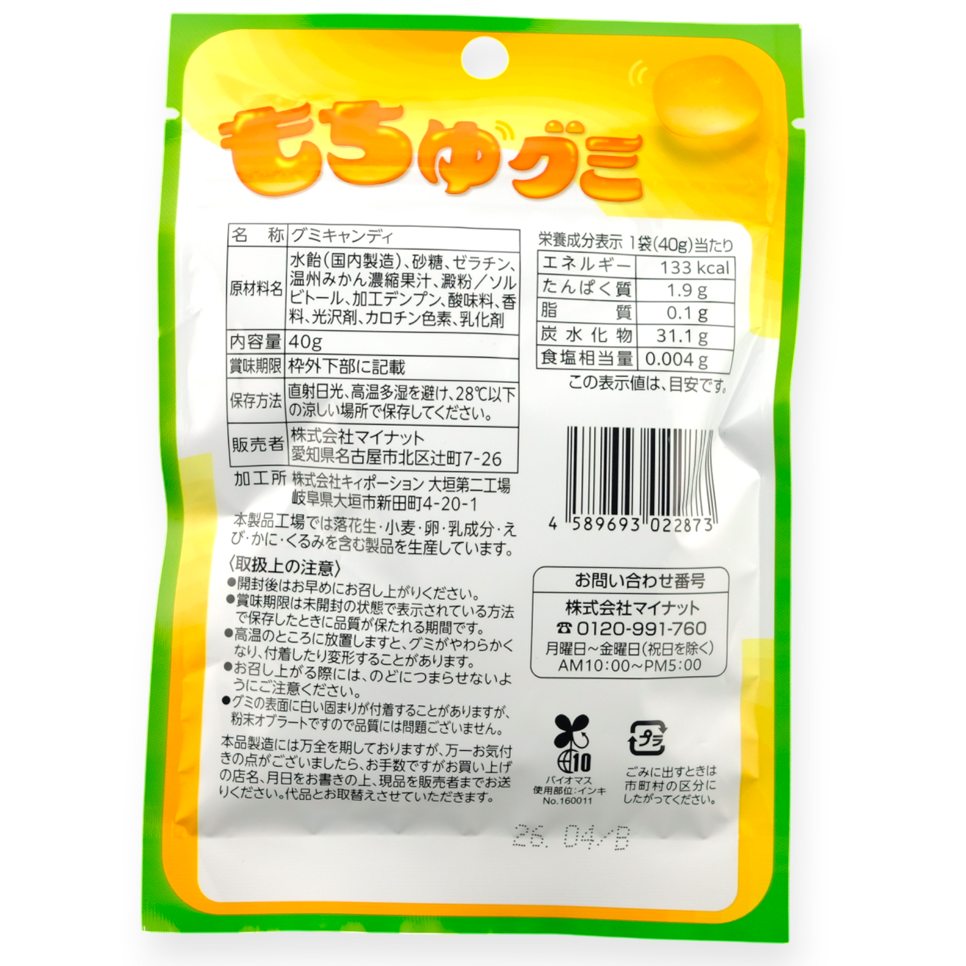 A soft, mochi-like gummy filled with the bright, sun-ripened flavor of Japanese mandarin oranges. Made with real Unshū mikan juice, these gummies deliver a juicy, mellow sweetness wrapped in a bouncy, tender chew that feels almost like biting into a tiny citrus mochi. Gentle, fruity, and wonderfully comforting.