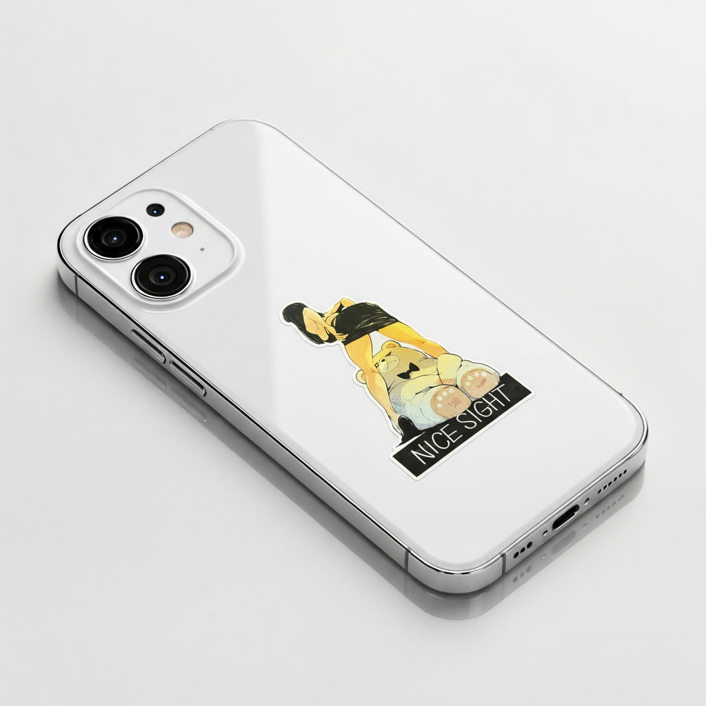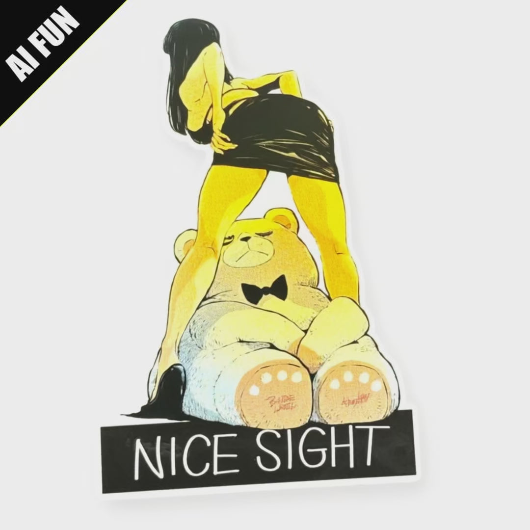 Bold, cheeky, and impossible to ignore — this B-Side Label sticker blends humor and pop-art attitude with a wink. The confident pose, playful teddy bear, and sharp contrast of yellow and black make it a standout piece that doesn’t take itself too seriously.