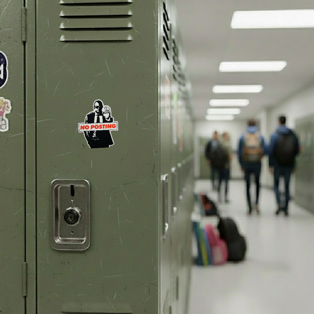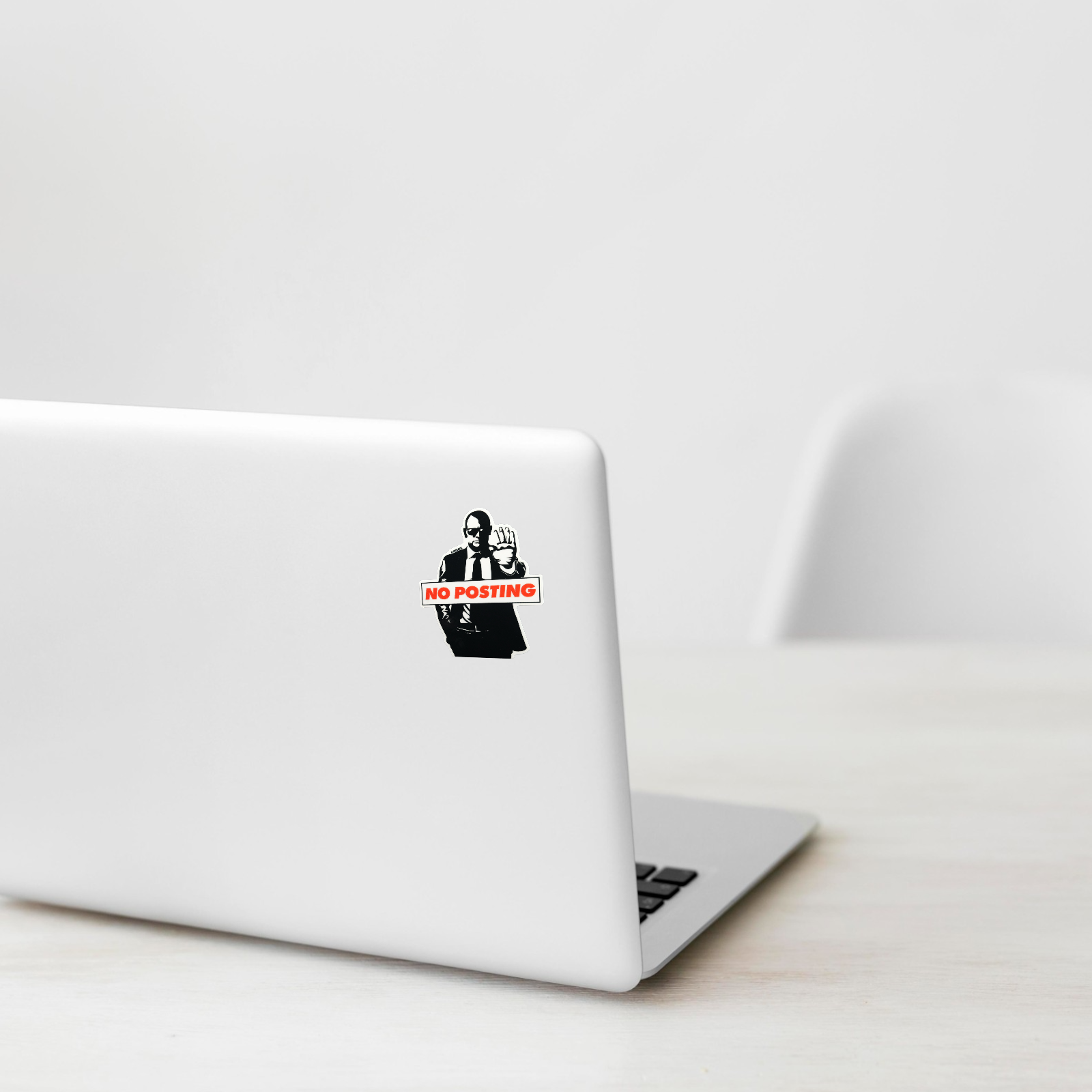 This bold black-and-white design features a stern suited figure with a commanding hand gesture and the phrase “NO POSTING” in striking red. Perfect for those who love tongue-in-cheek humor, rebellious vibes, or simply want to make a strong statement wherever they stick it.