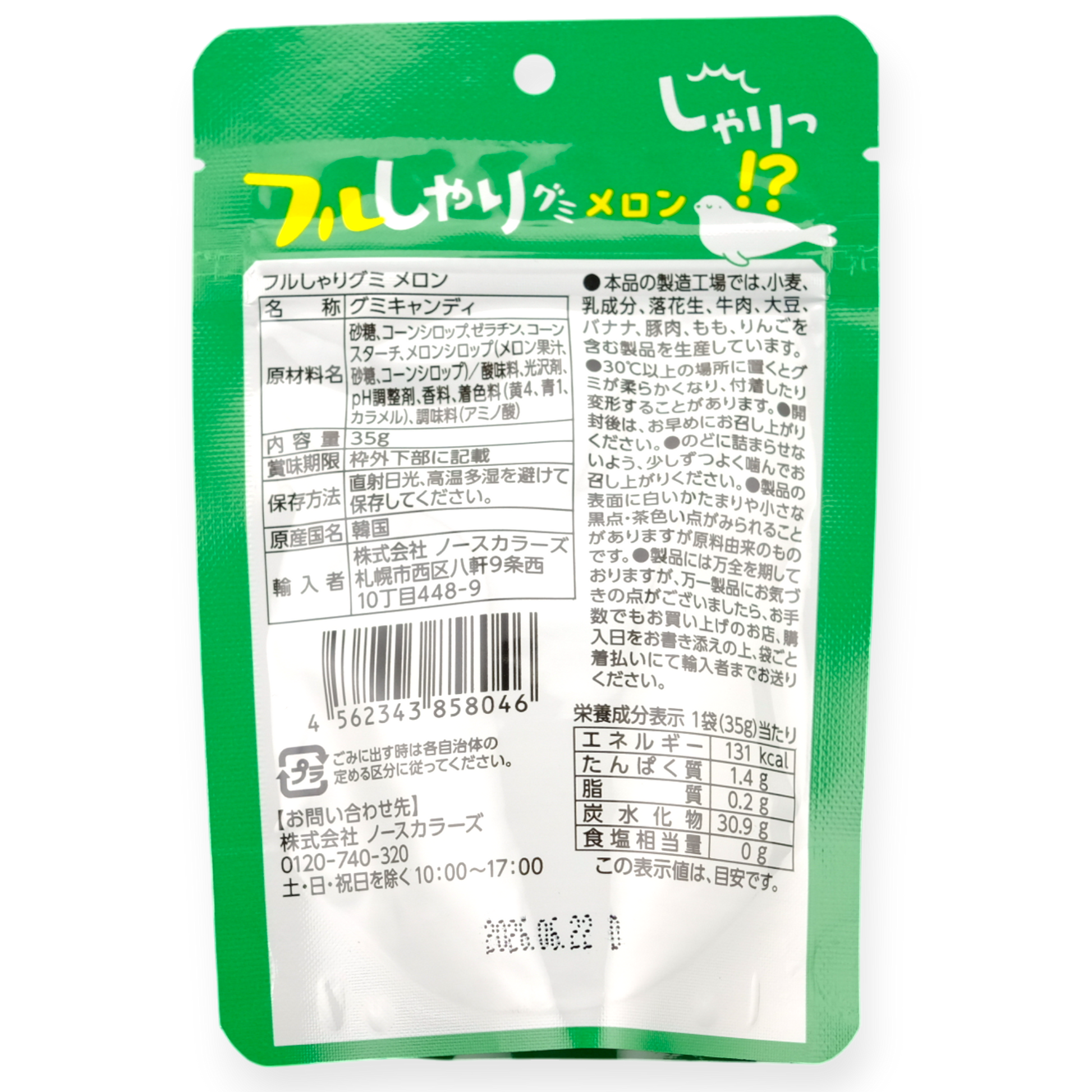 A juicy melon gummy crafted to taste like a fresh, chilled slice of Japanese melon. This series is known for its crisp, lightly crackling sugar texture on the outside and a soft, fruity chew inside—delivering a surprisingly realistic “bite-into-fruit” sensation. Refreshing, bright, and perfect for melon fans.