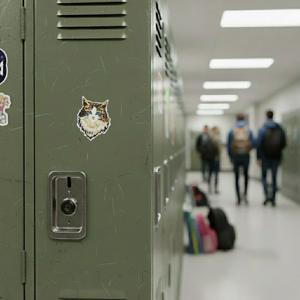 This stunning sticker captures the regal beauty of the Skogkatter, or Norwegian Forest Cat, with piercing blue eyes and a luxuriously detailed coat. It’s a mix of elegance and wilderness that feels straight out of a fairytale forest.