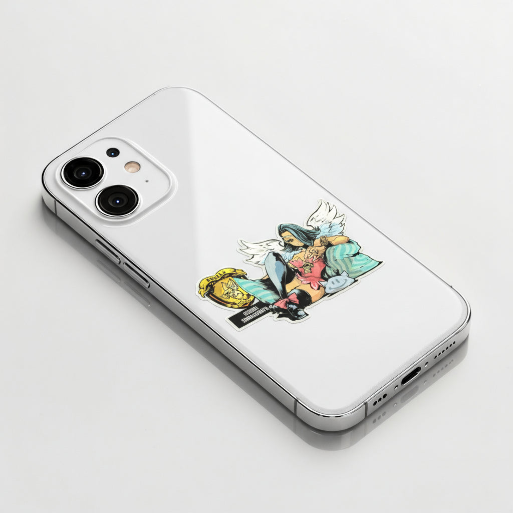 Equal parts divine and dangerous, Serious-Face Angel lounges with a knowing smirk and wings that promise both judgment and mercy. Wrapped in bold color contrasts and cheeky attitude, she’s the kind of angel who breaks all the rules — beautifully.
