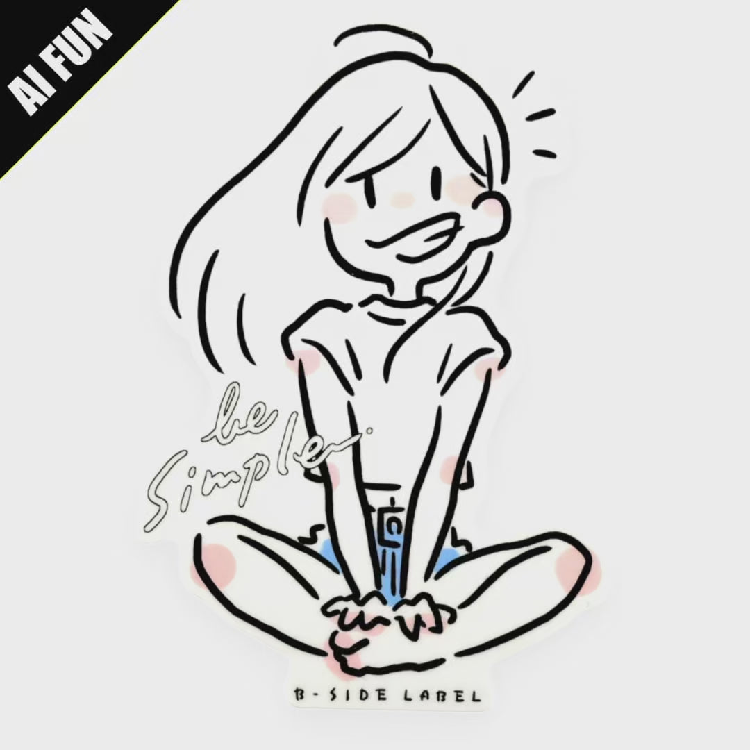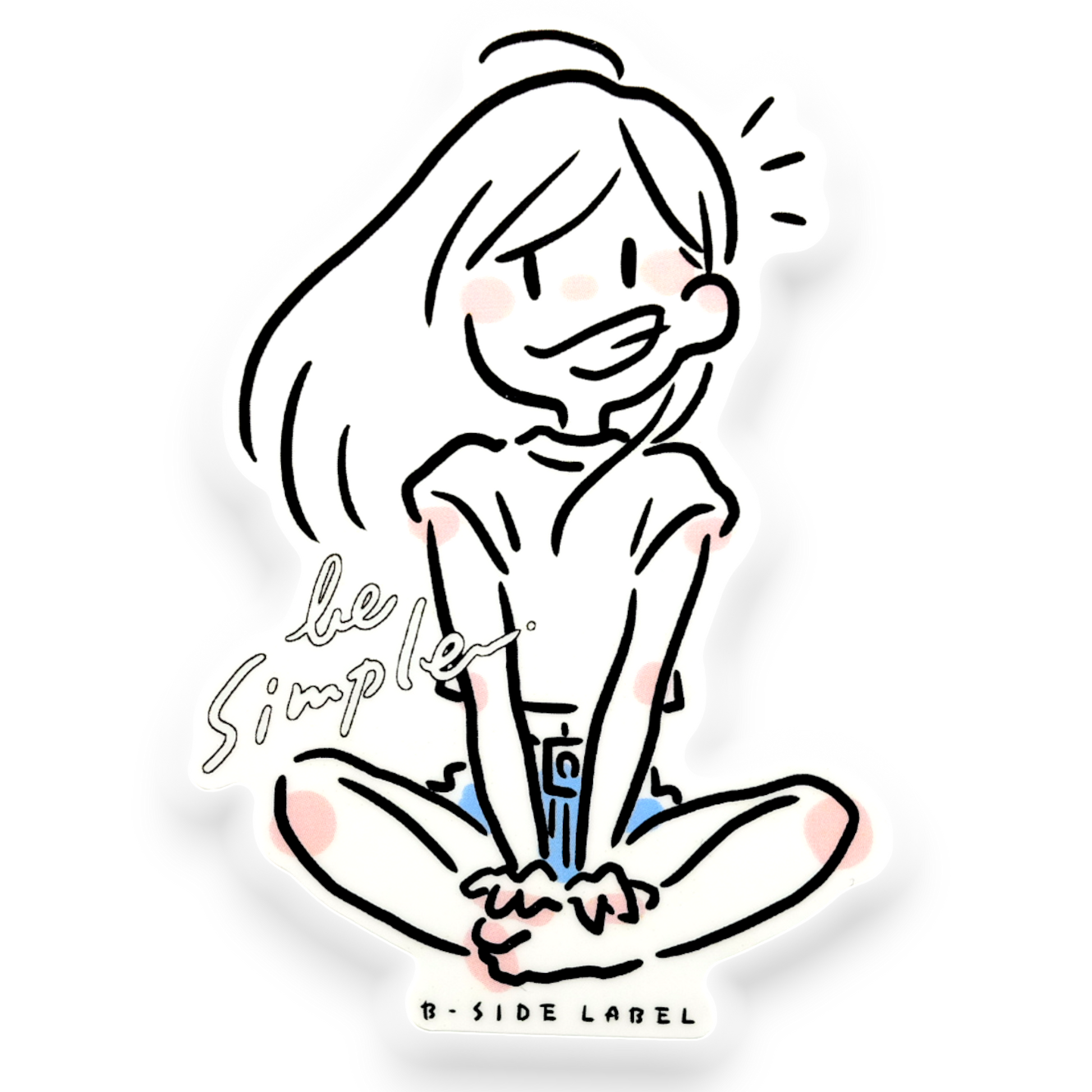 This charming hand-drawn style sticker features a carefree girl sitting cross-legged with an easy smile, reminding us to “Be Simpler.” With its minimalist lines and soft blush tones, it captures the beauty of keeping life light and joyful.