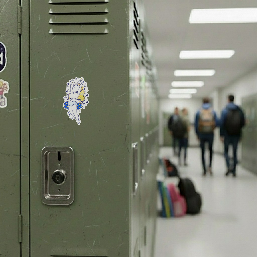 Drifting through a dream of daisies and starlight, Star Float Girl captures that carefree moment of pure joy. With its playful mix of deep blue, bright yellow, and gentle lines, this design radiates freedom and a touch of whimsy.