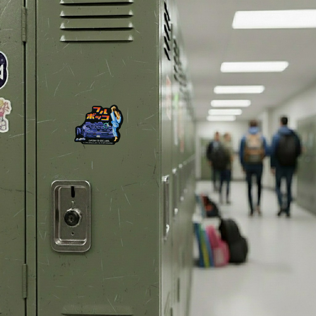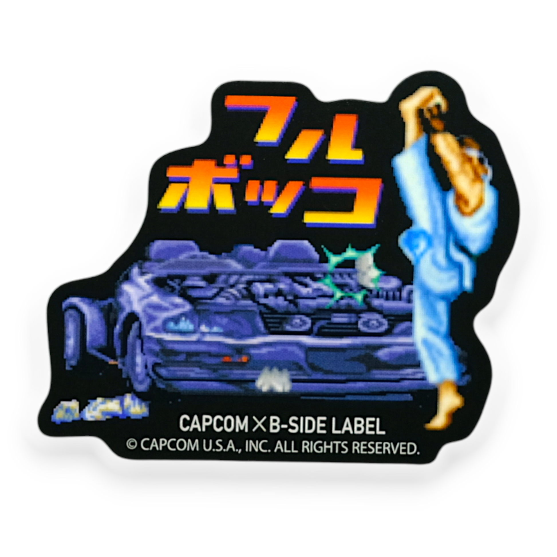 This retro-style B-Side Label collaboration with CAPCOM brings back one of gaming’s most iconic moments — the car-smashing bonus stage from Street Fighter! Featuring pixel-perfect art and bold Japanese lettering, this sticker captures pure arcade nostalgia in collectible form.