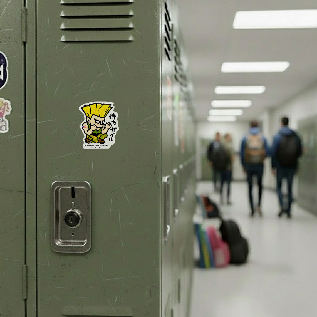 Charge up your Sonic Boom with this tough-but-cute Guile sticker from the official Capcom × B-Side Label collection! Featuring the iconic Street Fighter hero in a crouched fighting stance, this design perfectly captures his “cool and ready” attitude — complete with that legendary flattop. The Japanese text reads “Machi Guile” (literally “Waiting Guile”), a playful nod to his classic defensive style.