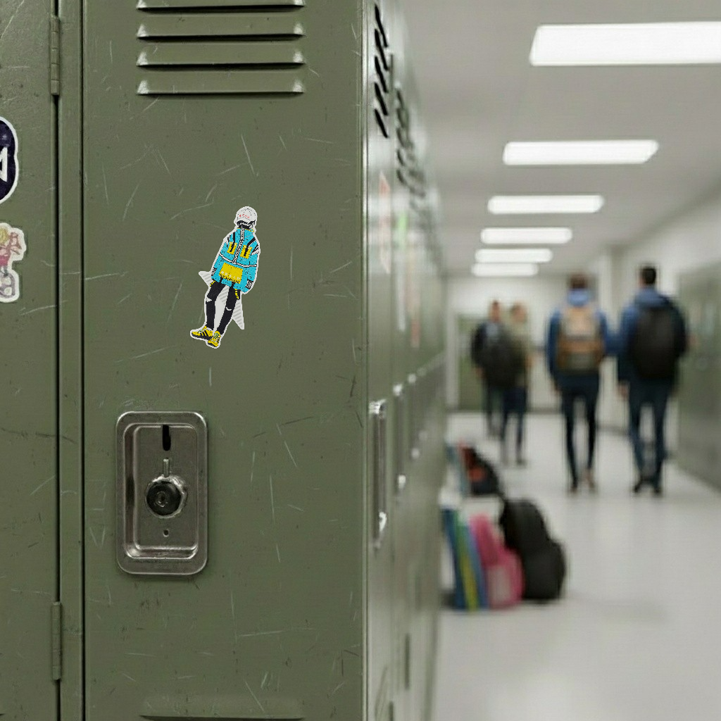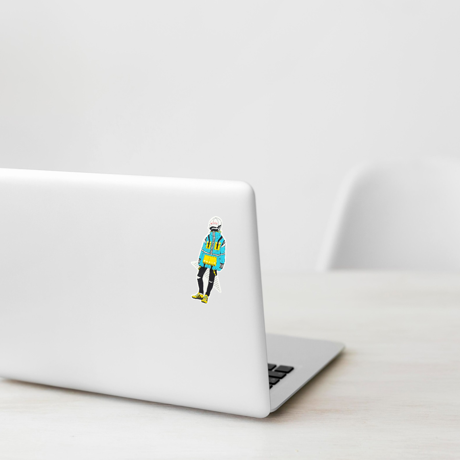 This bold B-Side Label sticker showcases a striking streetwear-inspired character from the “New Generation” series. Dressed in a high-collar turquoise jacket with bright yellow detailing and matching sneakers, the figure embodies the sleek fusion of Japanese fashion, techwear, and youth rebellion. The cap with red lettering adds an edgy, underground vibe that’s distinctly B-Side Label in spirit.