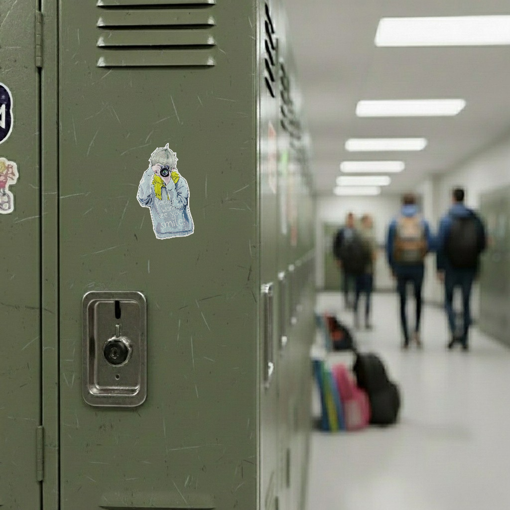 This heartwarming sticker from B-Side Label captures a gentle, emotional moment through soft watercolor tones and a simple message. A young photographer lifts their camera with a warm expression — a visual reminder of how kindness and creativity can brighten anyone’s day.