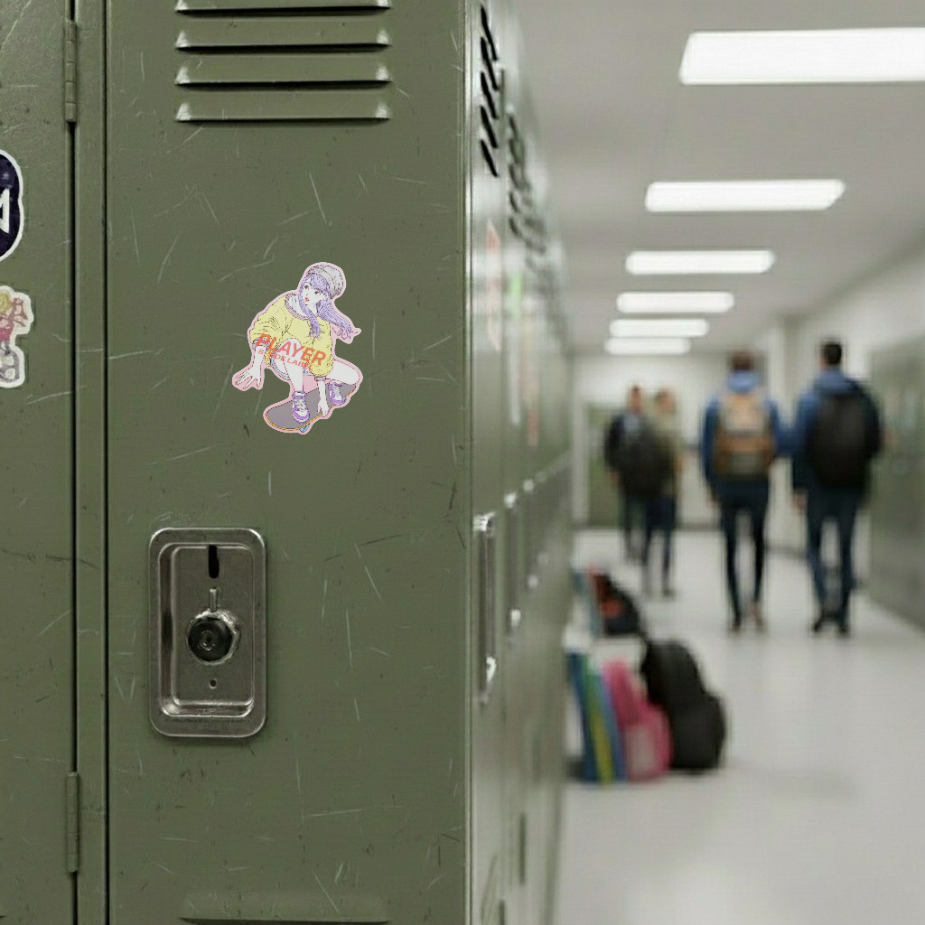 Stylish and effortlessly cool — this B-Side Label sticker captures the motion and attitude of a skater girl mid-move. With soft pastel tones, casual streetwear, and that signature B-Side flair, it’s a perfect blend of grace and grit. The red “PLAYER” text adds a punch of confidence to the calm energy.