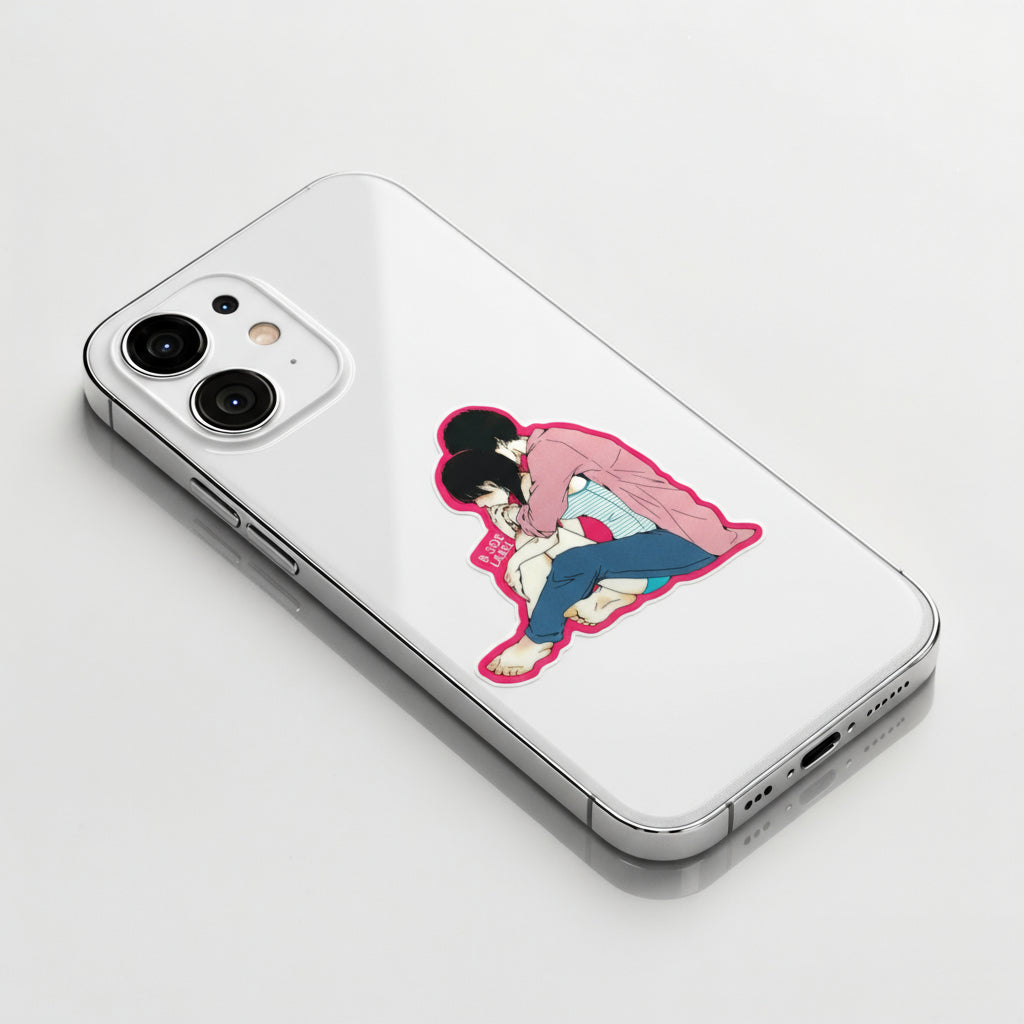 This B-Side Label design captures a private, heartfelt moment — a quiet embrace that speaks volumes without a word. The simplicity of the pose and soft tones convey safety, warmth, and human connection in its most honest form.