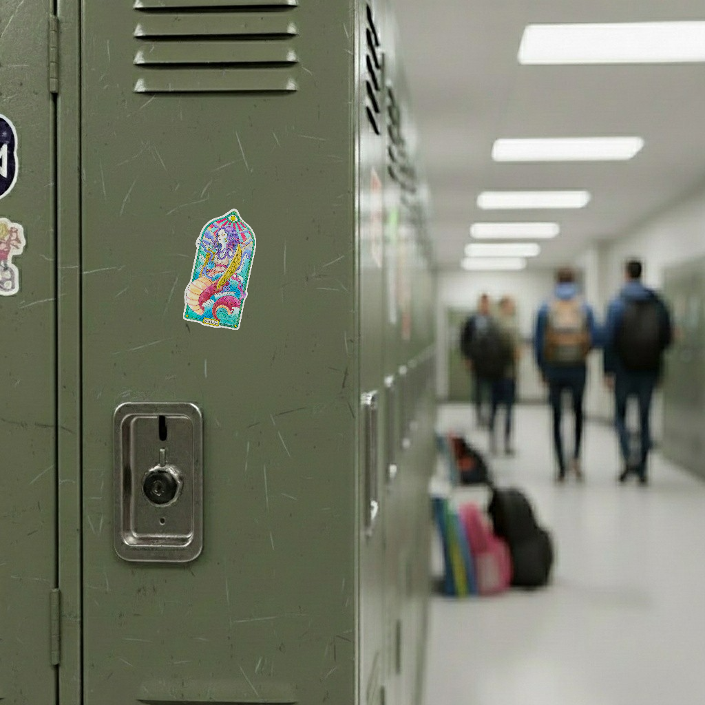 A breathtaking mix of myth and art, this B-Side Label sticker reimagines Medusa through a dreamy, watercolor lens. With pastel serpents, angelic wings, and ocean waves swirling beneath her, she’s both divine and dangerous — a goddess of calm and chaos.