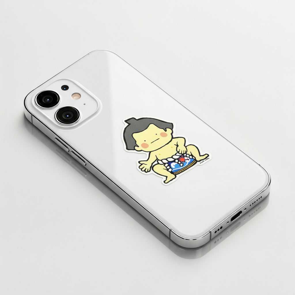 This charming B-Side Label sticker captures a kawaii-style sumo wrestler in his ready stance, complete with a ceremonial mawashi decorated with Mt. Fuji and the rising sun. The simple lines, warm colors, and soft expression give a lighthearted take on Japan’s traditional sport, blending humor with national pride in classic B-Side Label fashion.